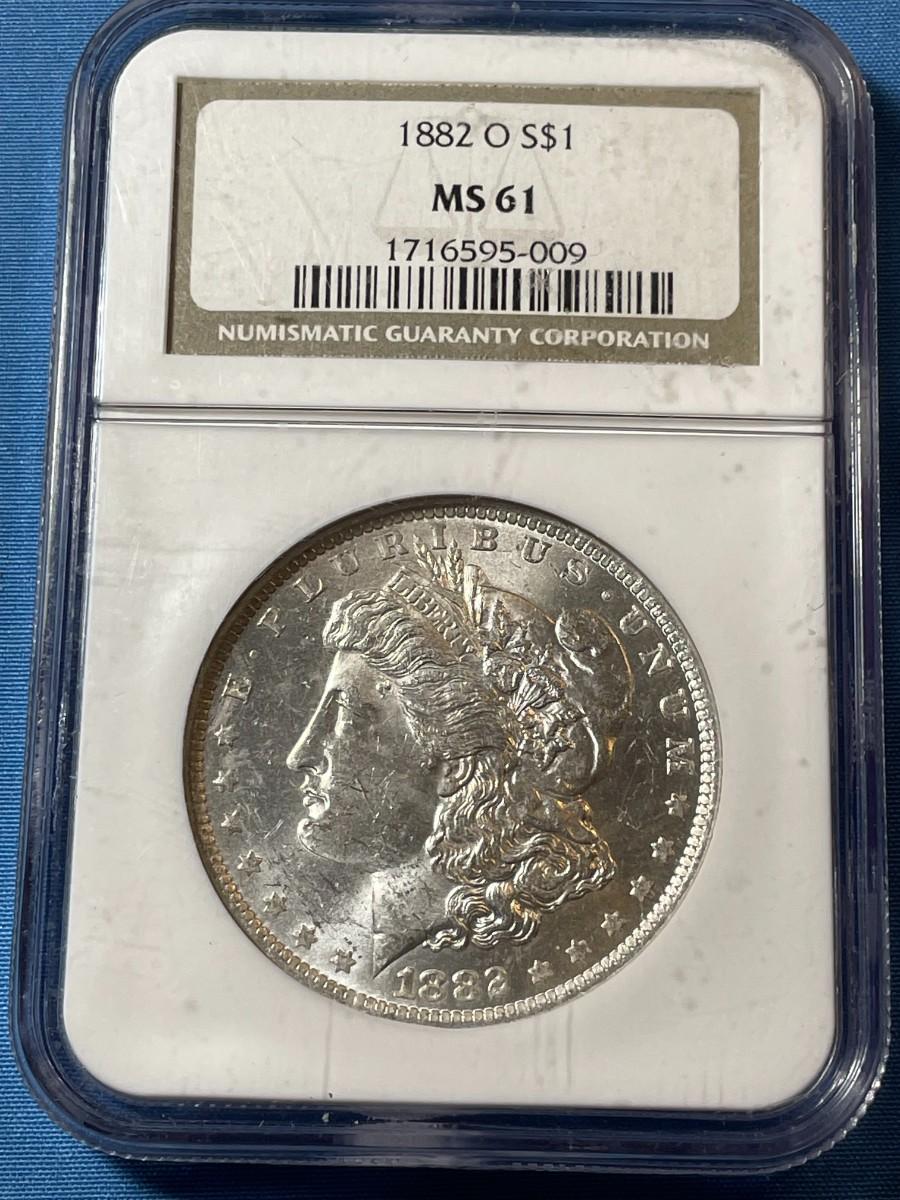 NGC CERTIFIED 1882-O MS61 GRADED MORGAN SILVER DOLLAR AS PICTURED. $5 DOMESTIC SHIPPING.