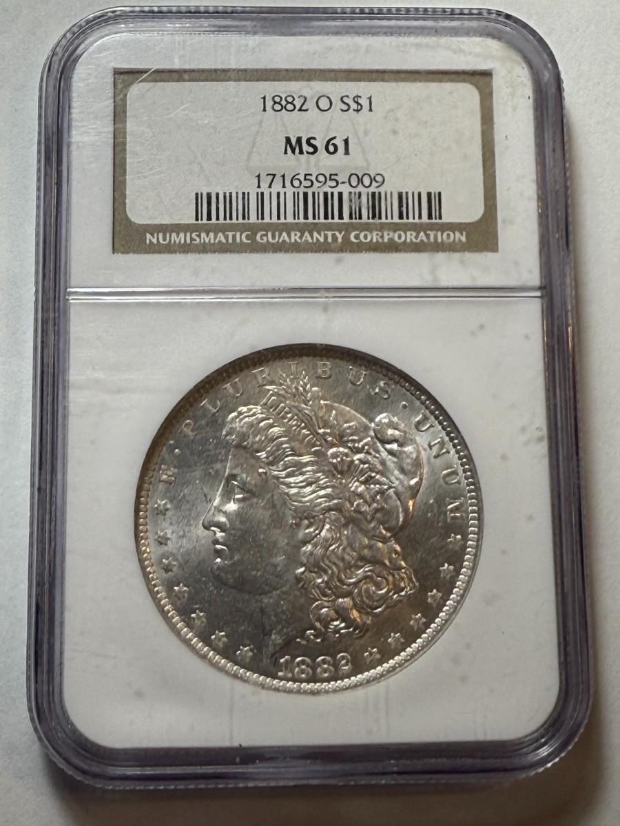 NGC CERTIFIED 1882-O MS61 MORGAN SILVER DOLLAR AS PICTURED. $5 DOMESTIC SHIPPING.