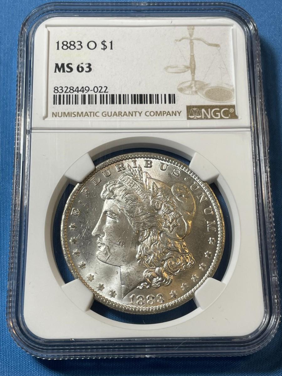 NGC CERTIFIED 1883-O MS63 GRADED MORGAN SILVER DOLLAR AS PICTURED. (COIN #022). $5 DOMESTIC SHIPPING.