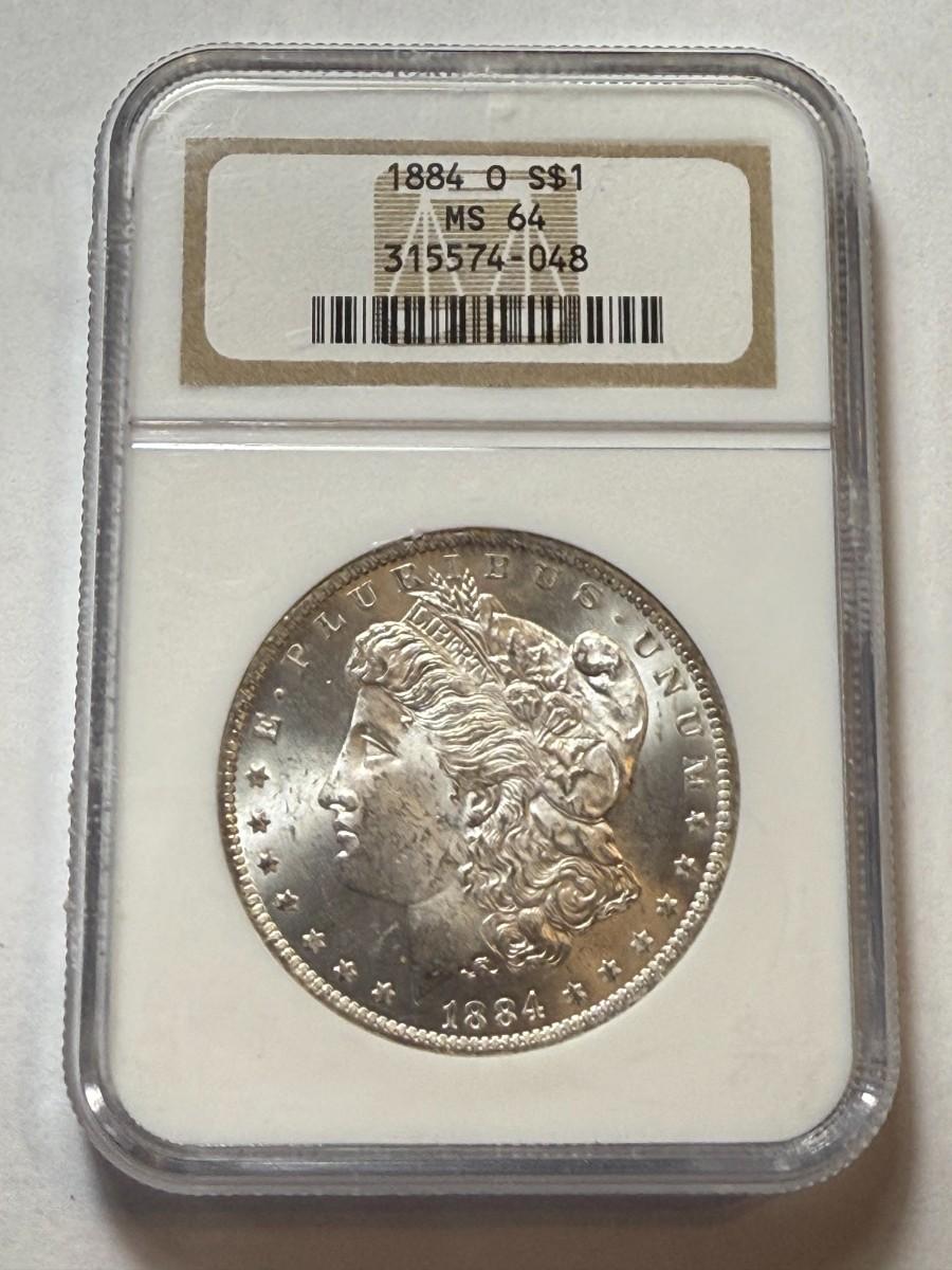 NGC CERTIFIED 1884-O MS64 MORGAN SILVER DOLLAR AS PICTURED. $5 DOMESTIC SHIPPING.