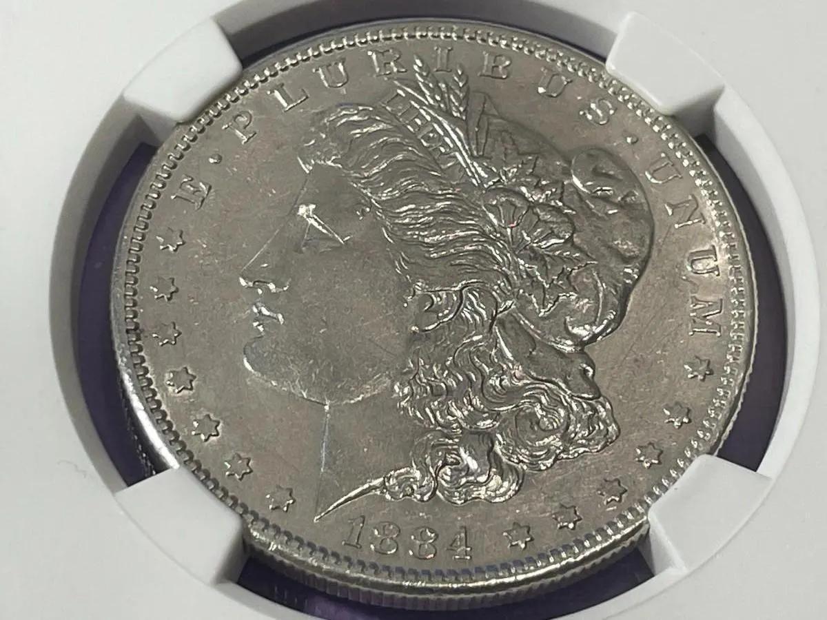 NGC CERTIFIED 1884-S AU DETAILS/CLEANED MORGAN SILVER DOLLAR AS PICTURED. (Coin #003). $5 DOMESTIC SHIPPING.