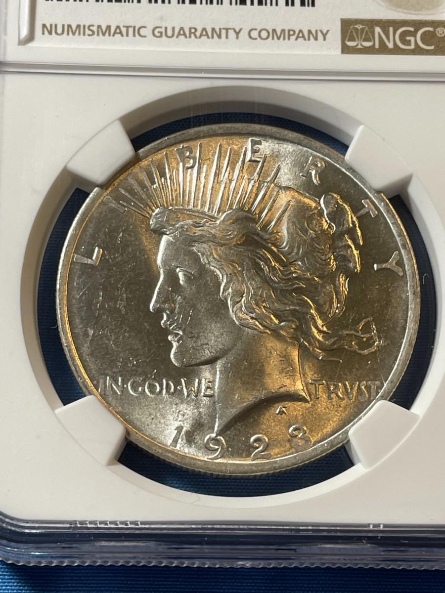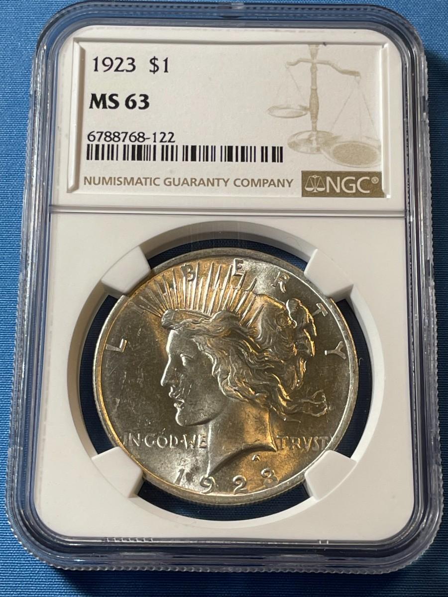 NGC CERTIFIED 1923 MS63 GRADED PEACE SILVER DOLLAR AS PICTURED. $5 DOMESTIC SHIPPING.
