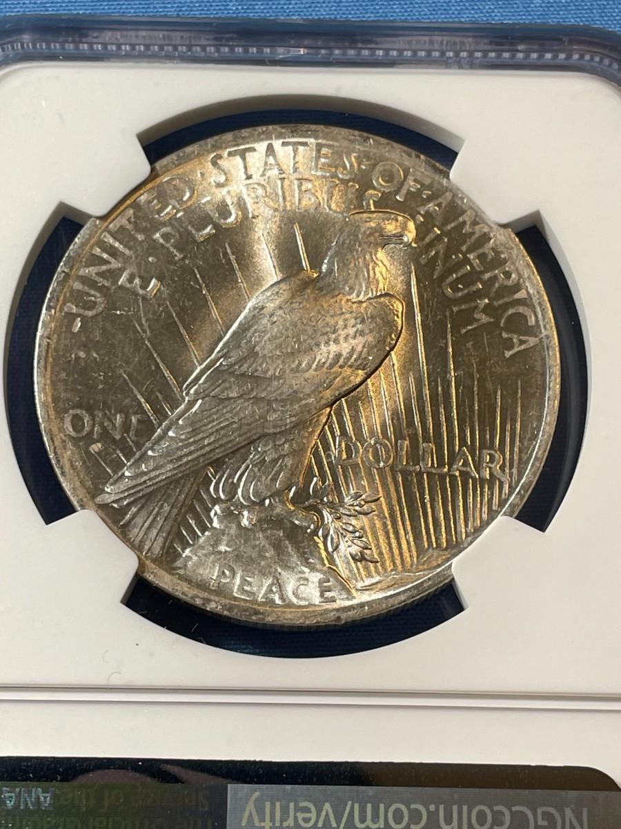 NGC CERTIFIED 1923 MS63 GRADED PEACE SILVER DOLLAR AS PICTURED. $5 DOMESTIC SHIPPING.