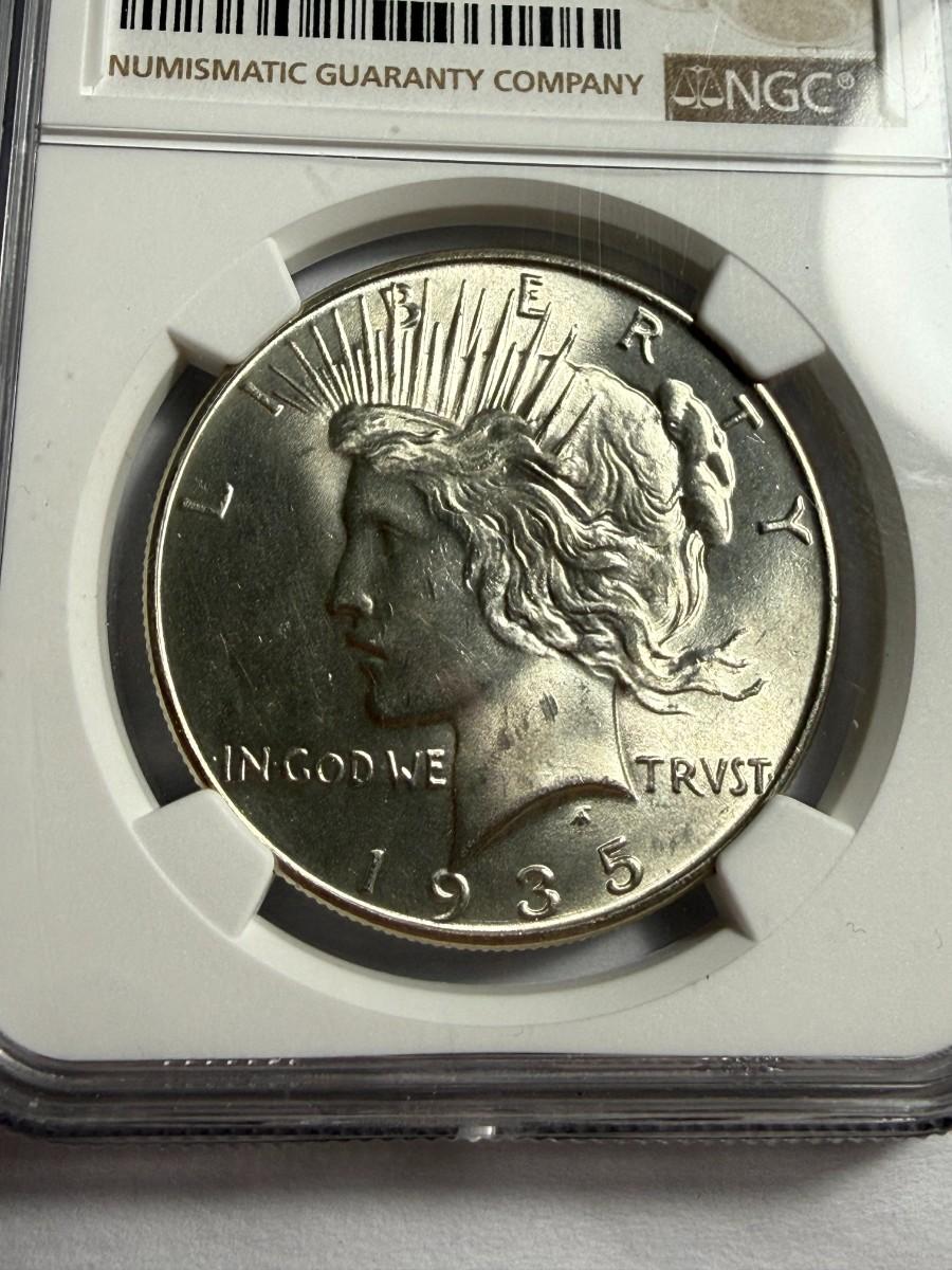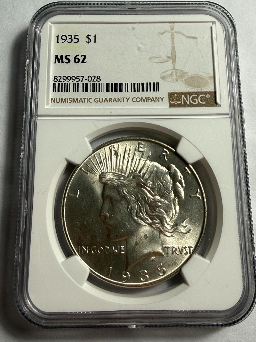 NGC CERTIFIED 1935-P MS62 CONDITION PEACE SILVER DOLLAR AS PICTURED. $5 DOMESTIC SHIPPING.