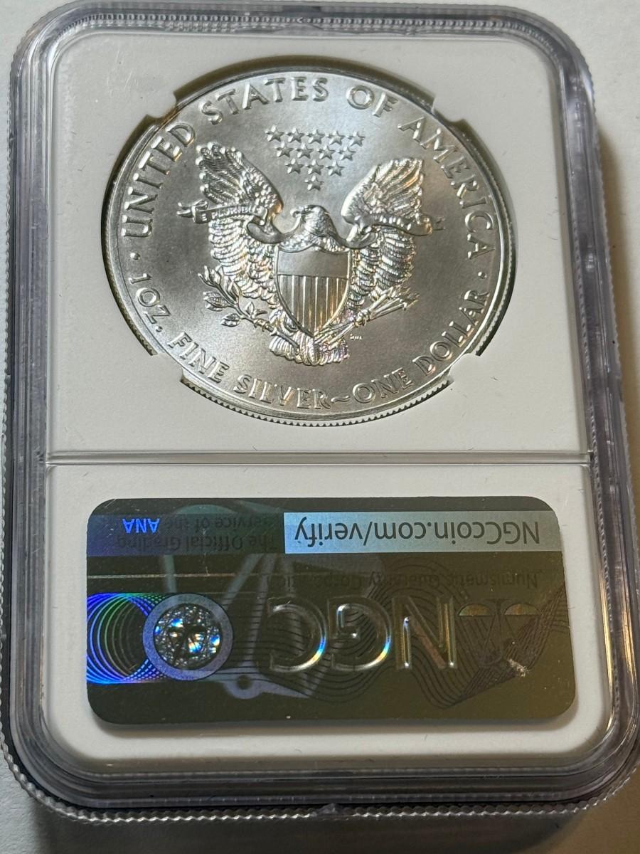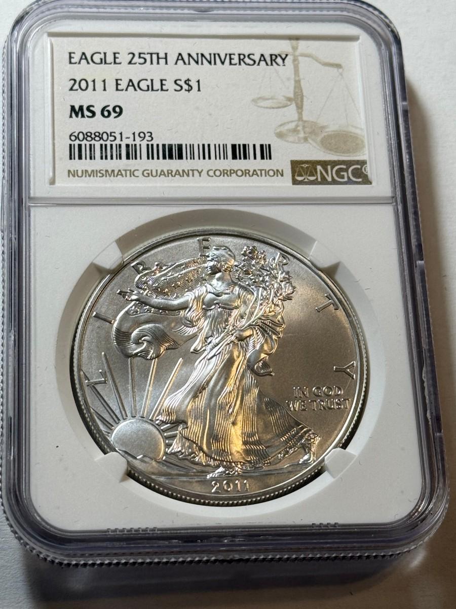 NGC CERTIFIED 2011 MS69 25TH ANNIVERSARY SILVER EAGLE DOLLAR 1-OUNCE .999 COIN AS PICTURED.