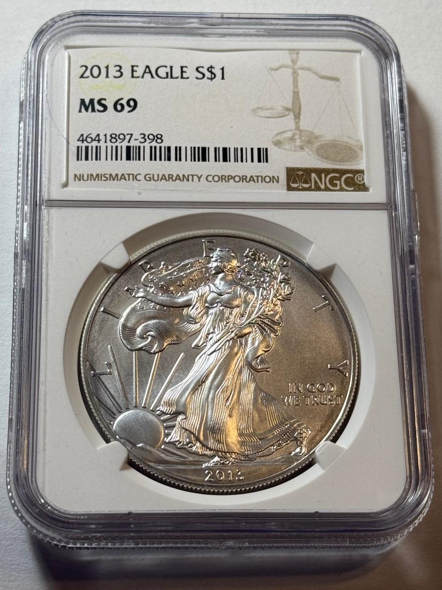 NGC CERTIFIED 2013 MS69 SILVER EAGLE DOLLAR 1-OUNCE .999 COIN AS PICTURED. $5 DOMESTIC SHIPPING.