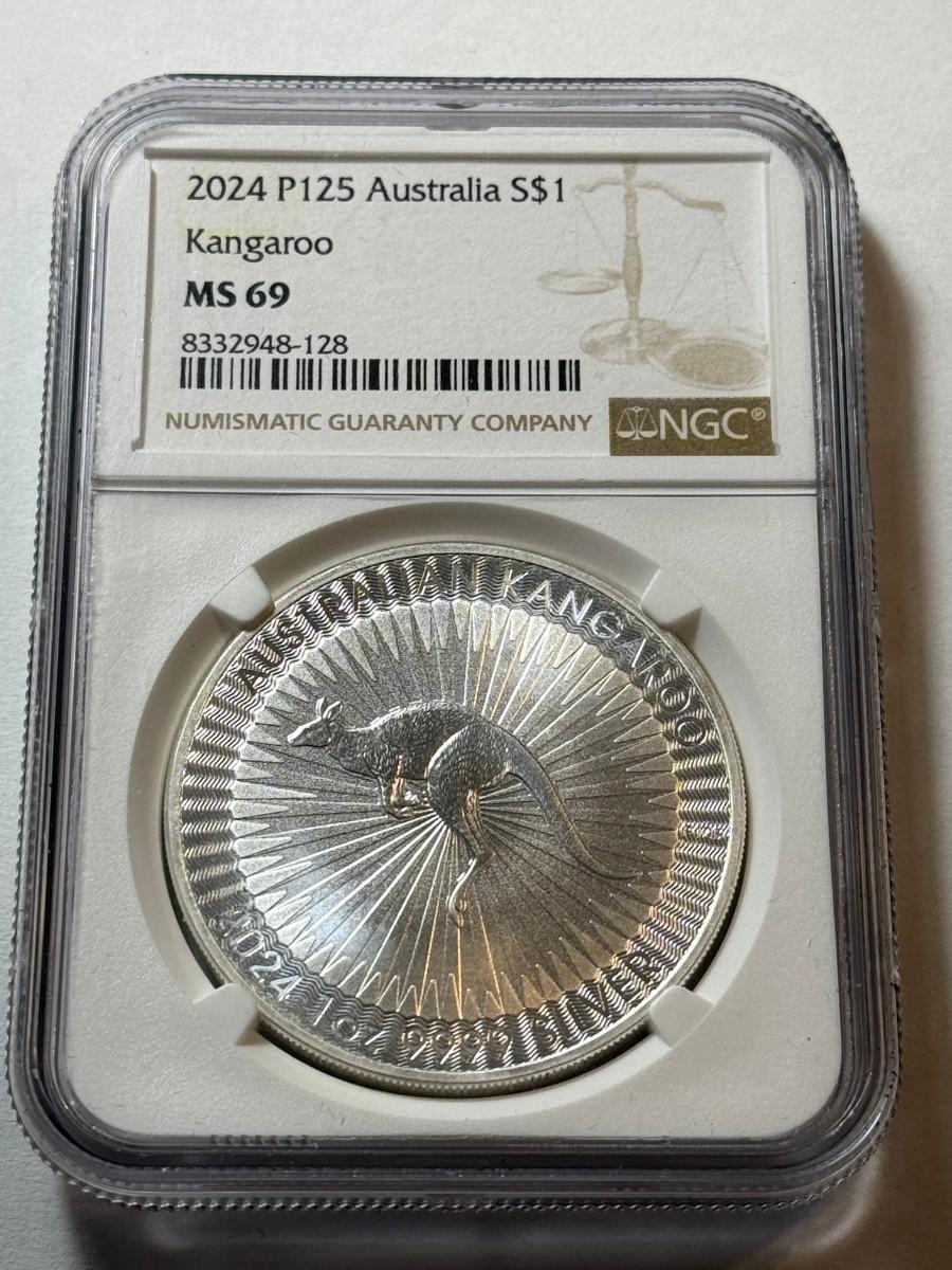 NGC CERTIFIED AUSTRALIA 2024-P MS69 KANGEROO 1-OUNCE SILVER COIN AS PICTURED. $5 DOMESTIC SHIPPING.