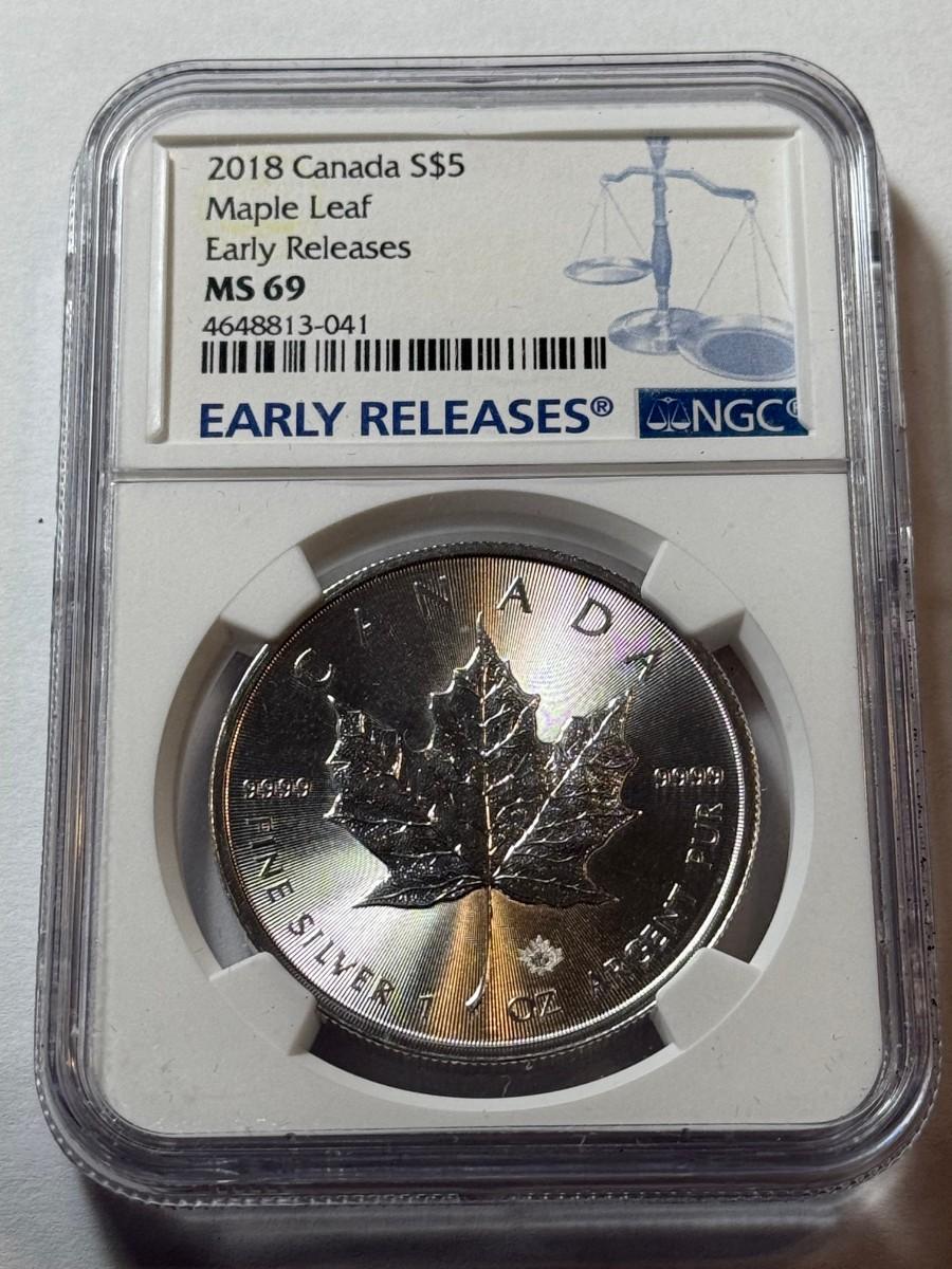 NGC CERTIFIED CANADA 2018 MS69 MAPLE LEAF 1-OUNCE SILVER COIN AS PICTURED. $5 DOMESTIC SHIPPING.