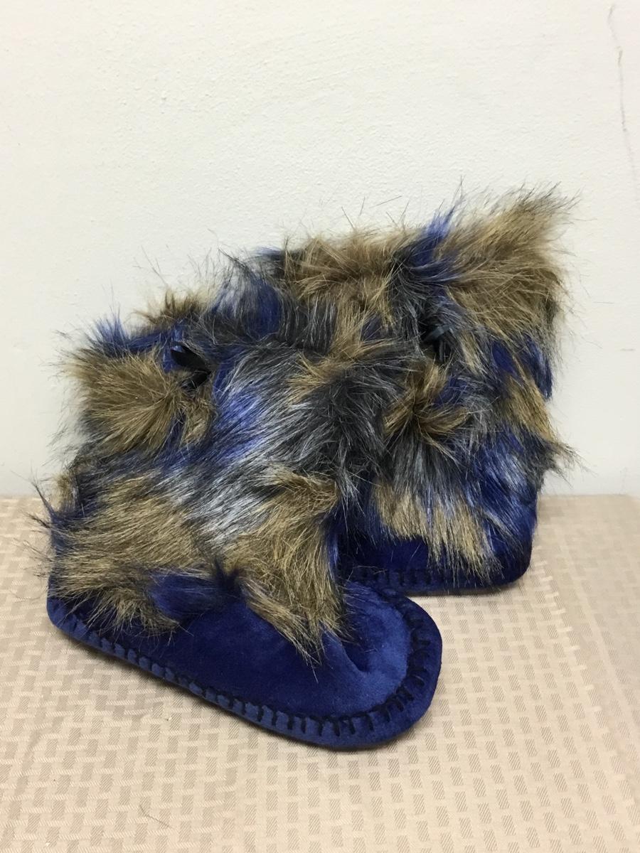 Blue Fox Faux Fur Bootie Style Slipper Shoes Size L by Adrienne Landeau. Lightly worn good condition.