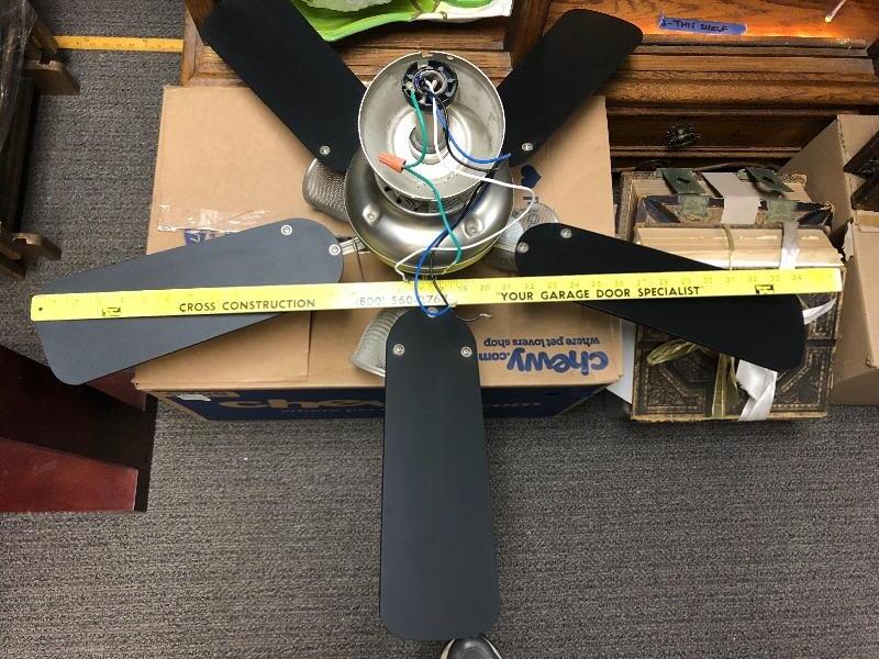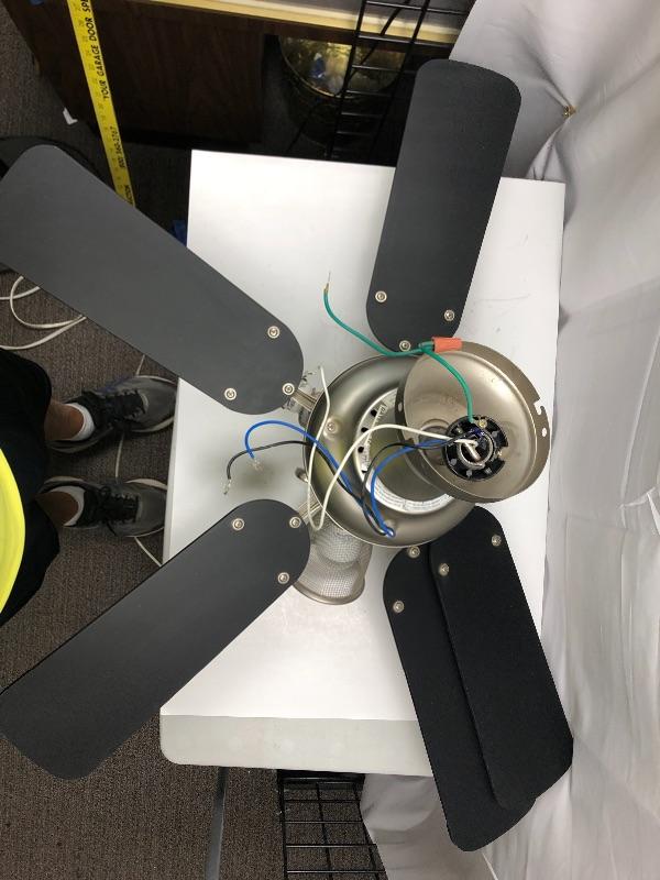 Harbor Breeze 5 blade ceiling fan with lights. Industrial modern style. Works, was removed to put in a different fixture. About 40" wide.