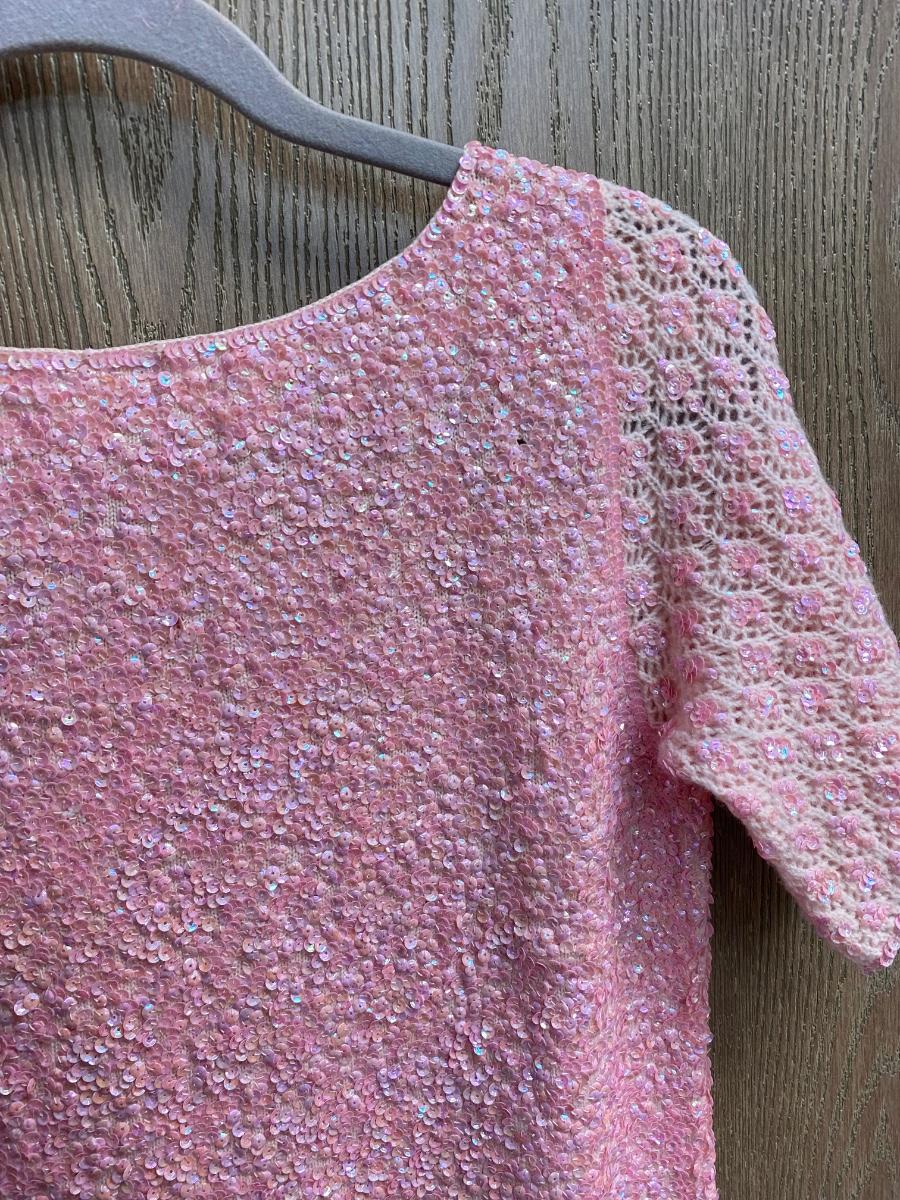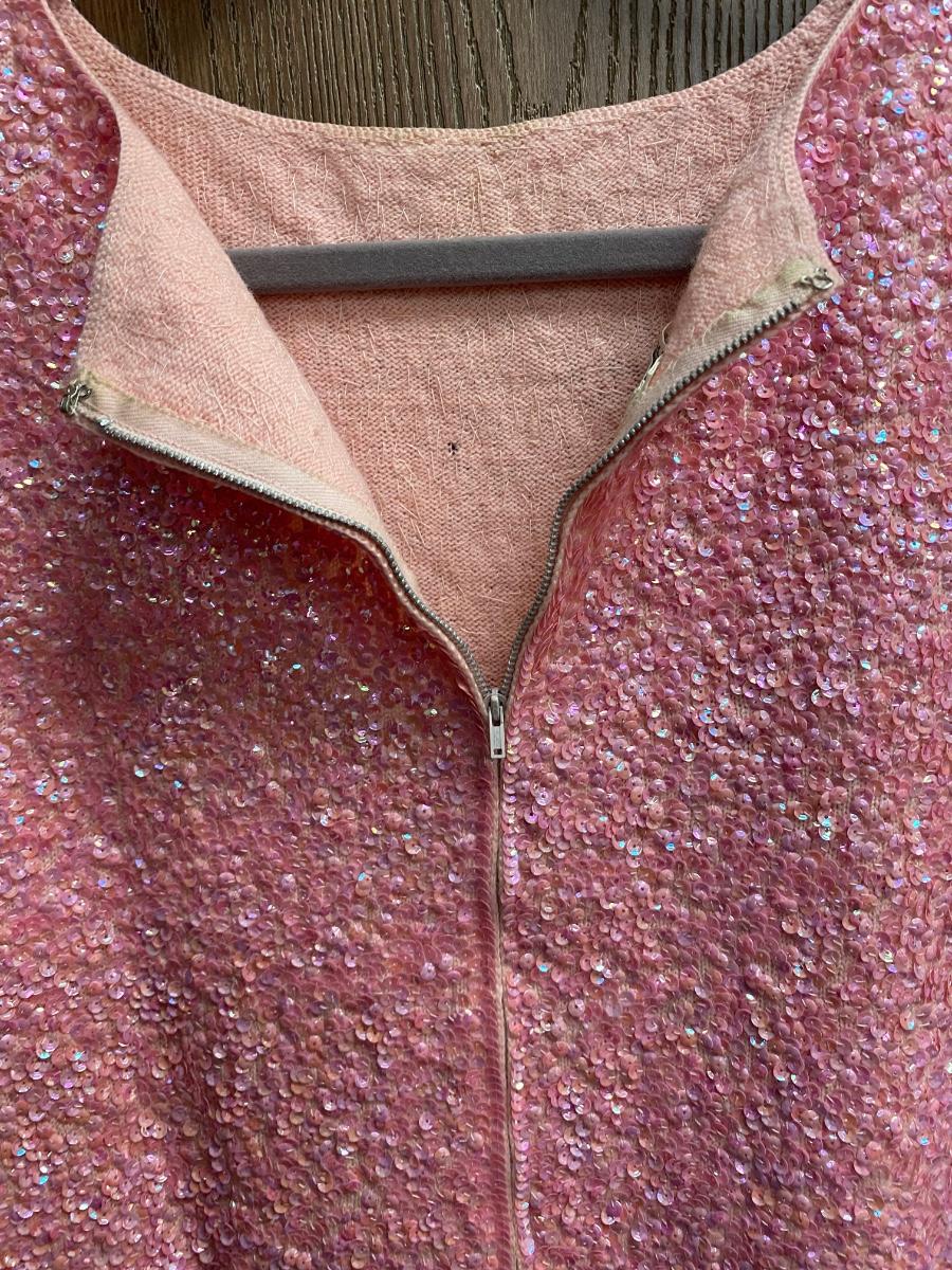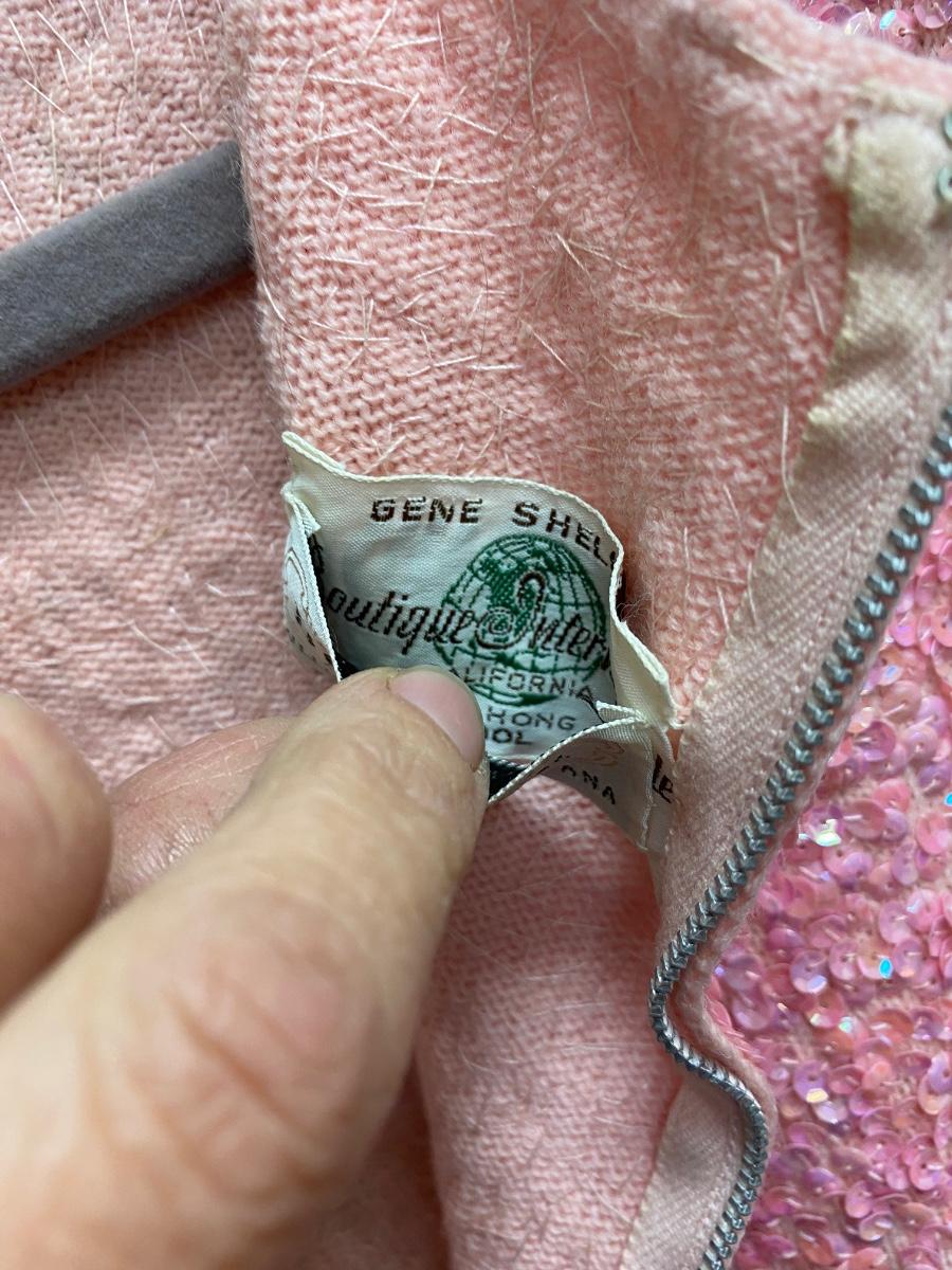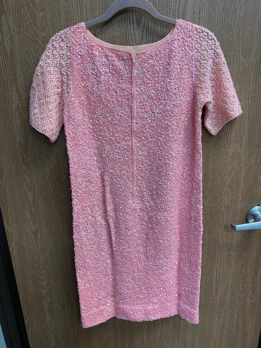 Vintage Retro Wool Pink Sequined Sheath Dress Gene Shell's Boutique Bullock's Santa Ana