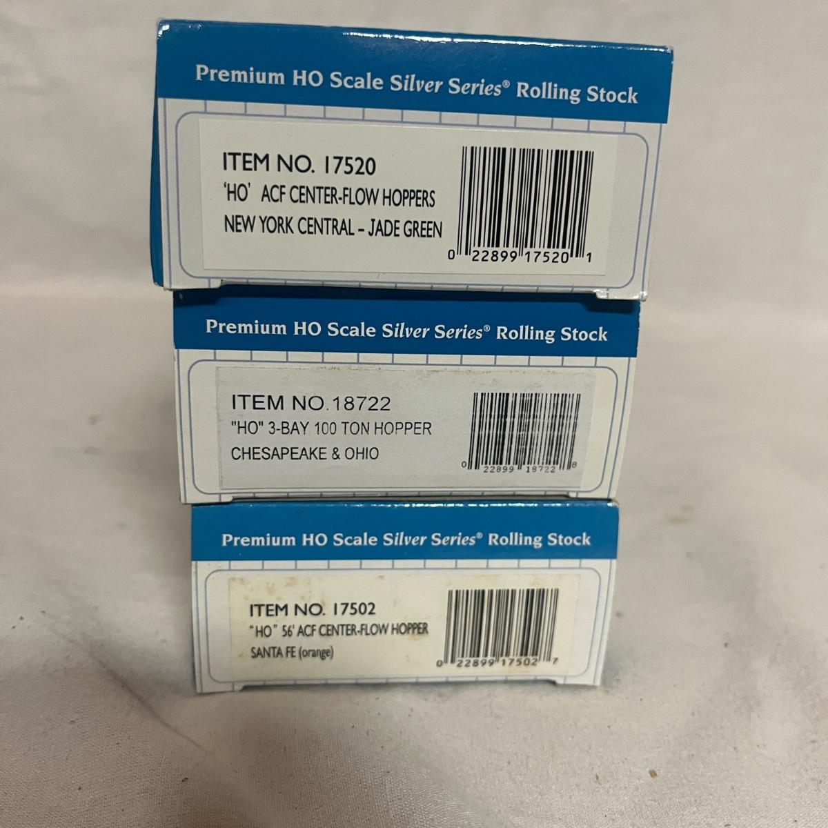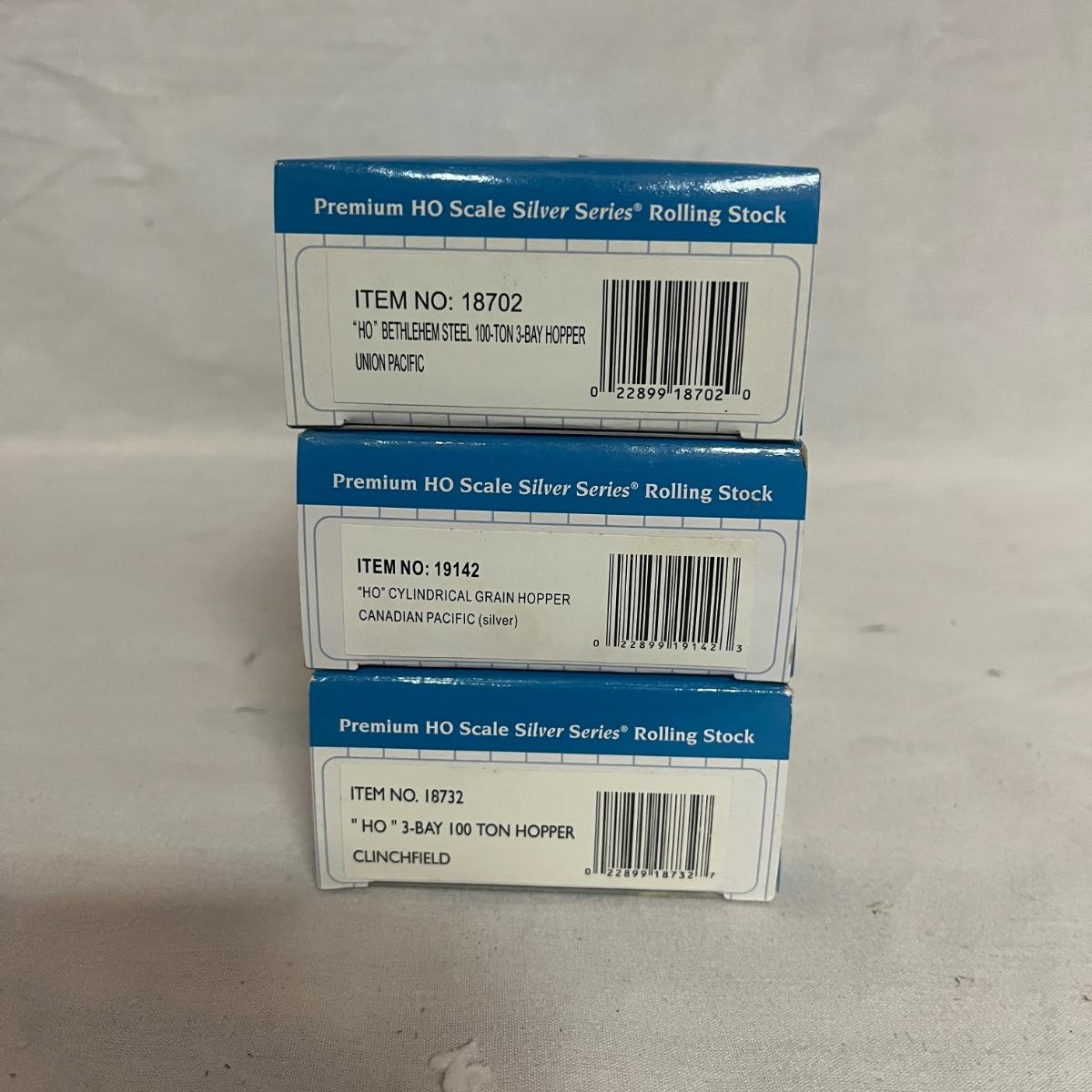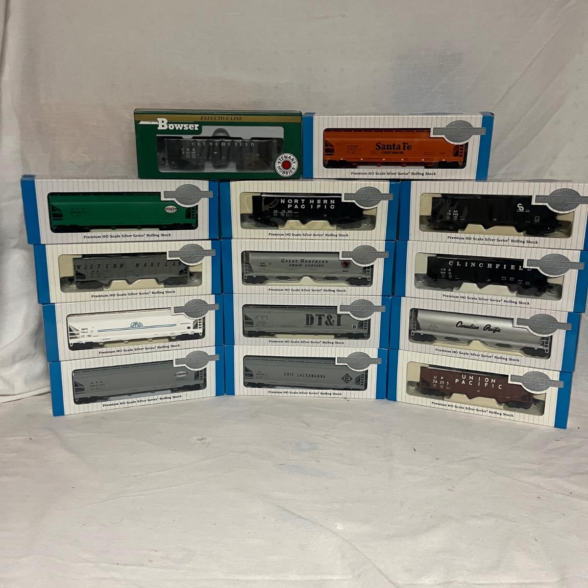 Lot includes 13 NIB Bachmann Silver Series Hoppers and one NIB Bowser hopper. Silver series boxes measure 10” x 1.75” x 3.5”H. Please note that any price tag seen on an item was not put there by Sterling Transitions and does not reflect the current value of the item.