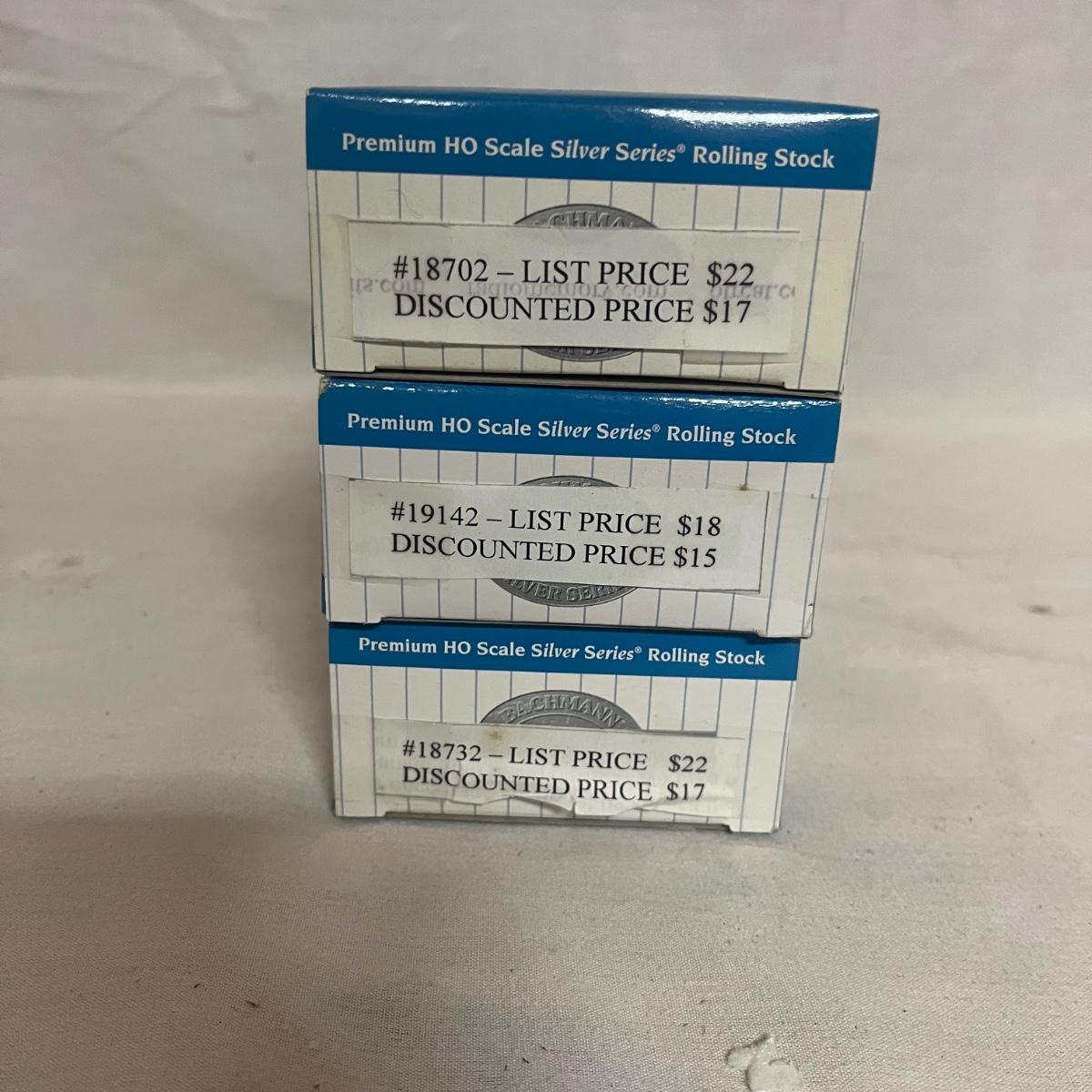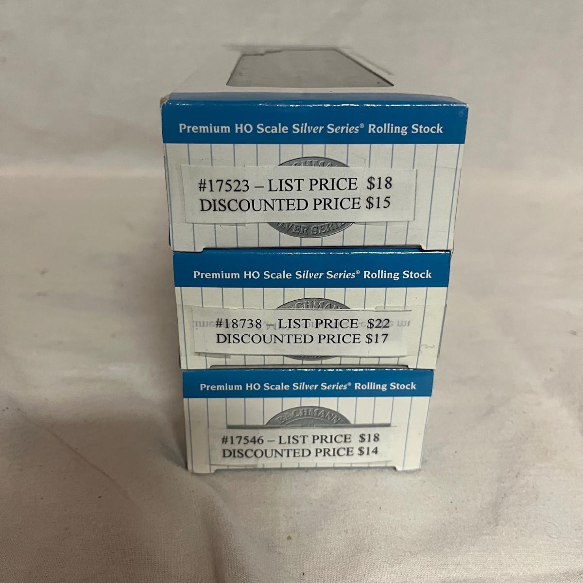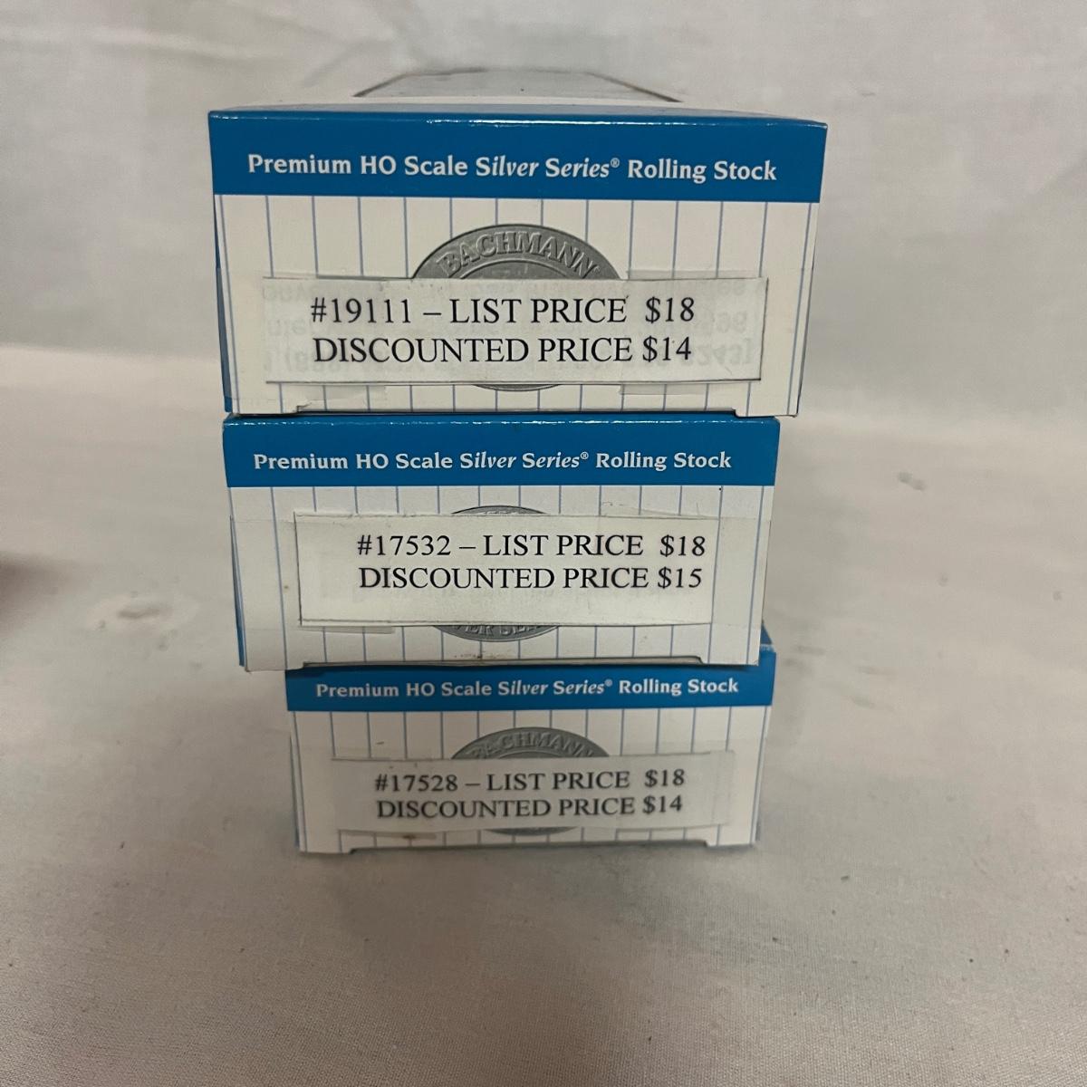 Lot includes 13 NIB Bachmann Silver Series Hoppers and one NIB Bowser hopper. Silver series boxes measure 10” x 1.75” x 3.5”H. Please note that any price tag seen on an item was not put there by Sterling Transitions and does not reflect the current value of the item.
