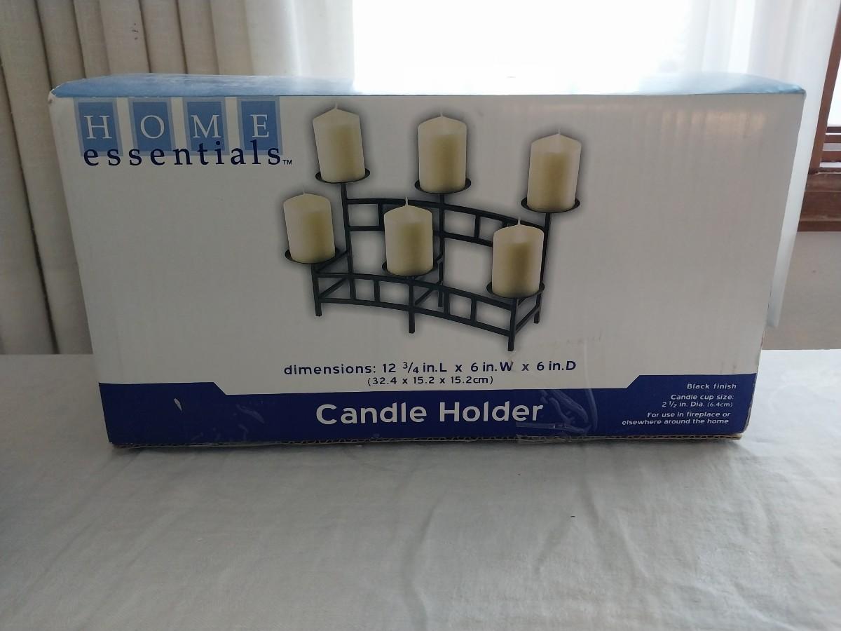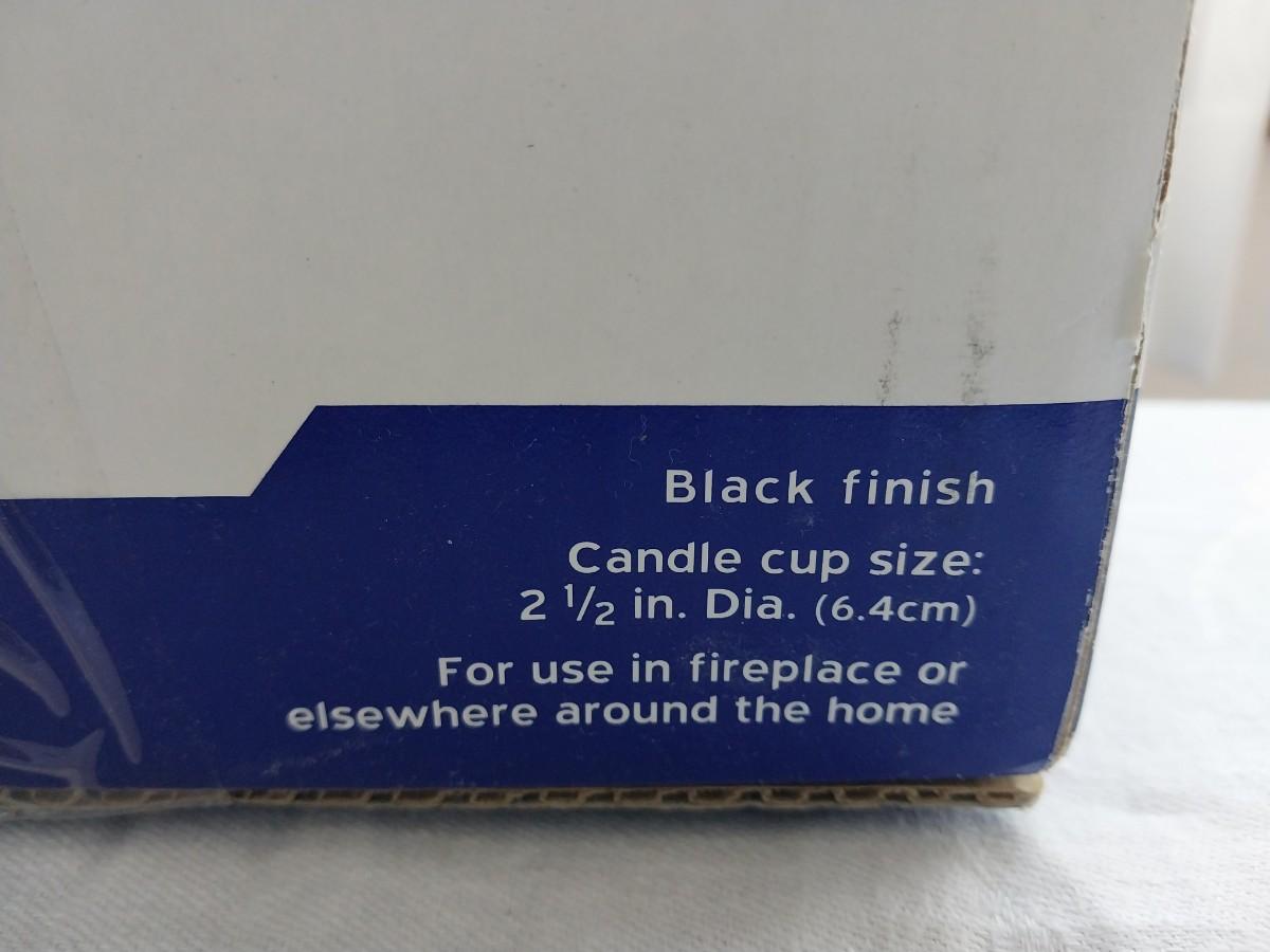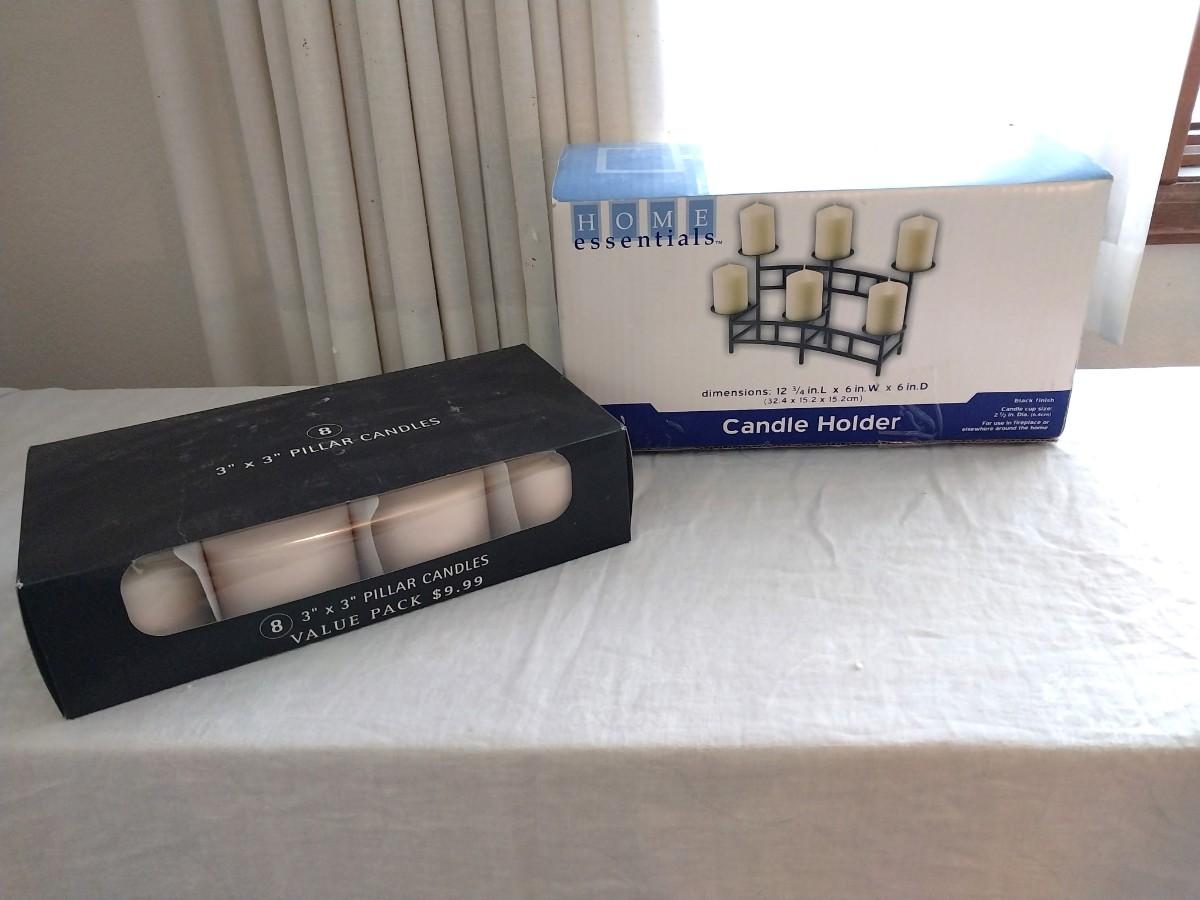 NIB Black Mantle Candle Holder & Box of Piller Candles