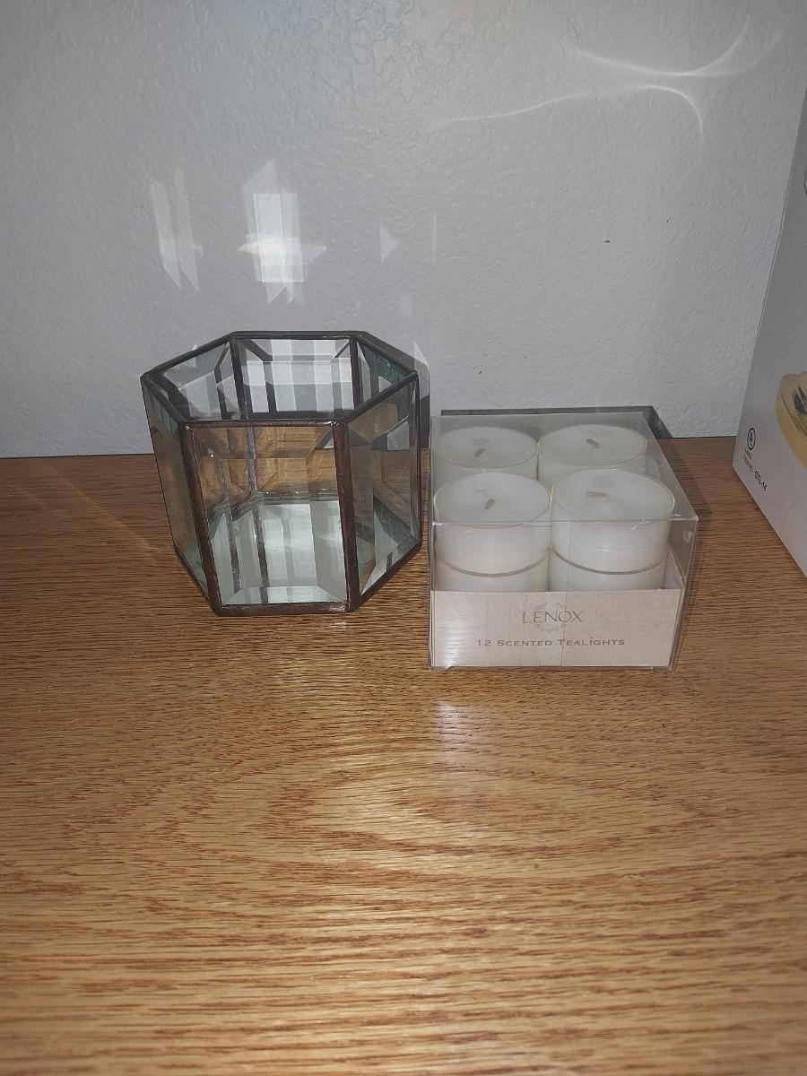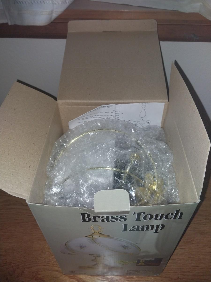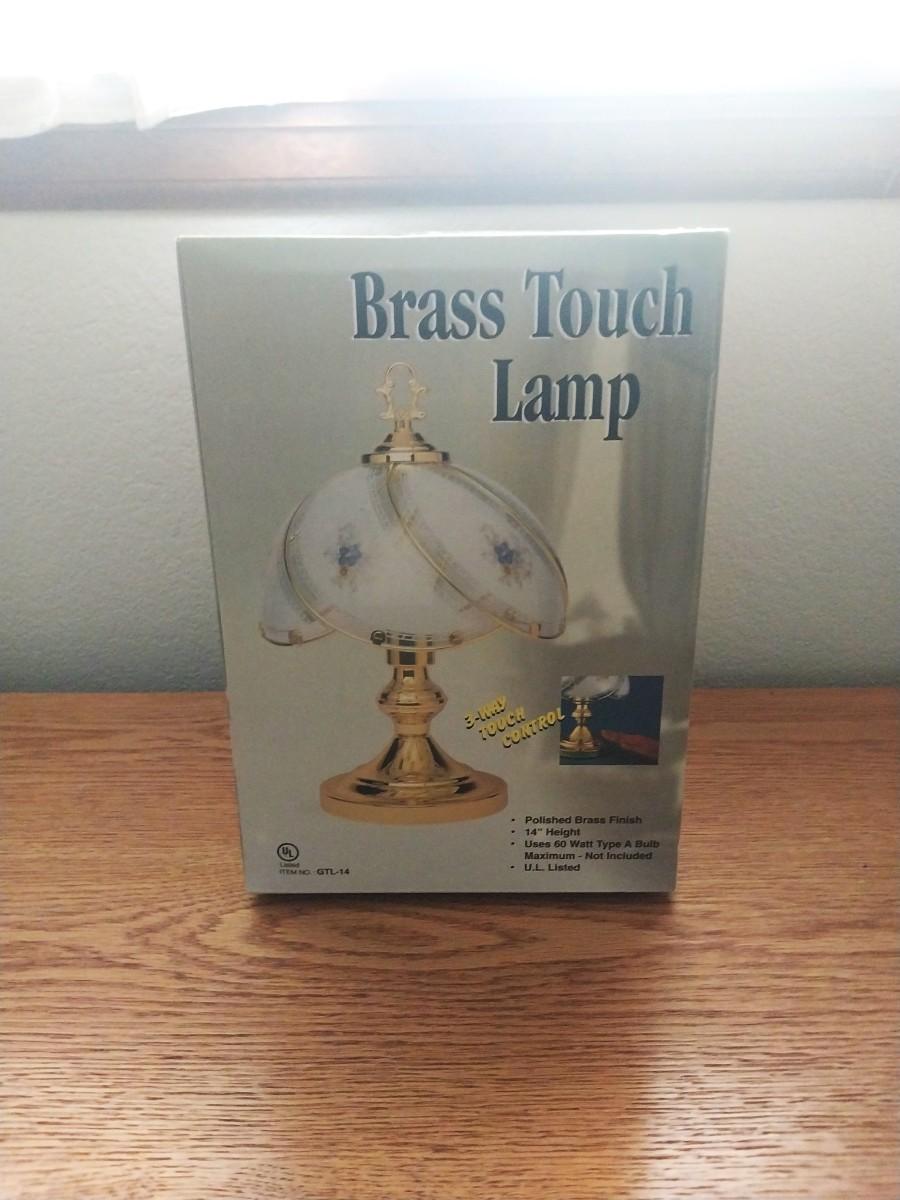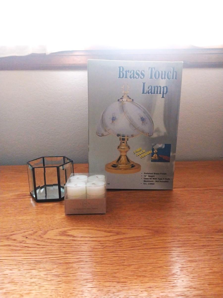 (NIB) Brass Touch Lamp and Glass candle Holder & Candles