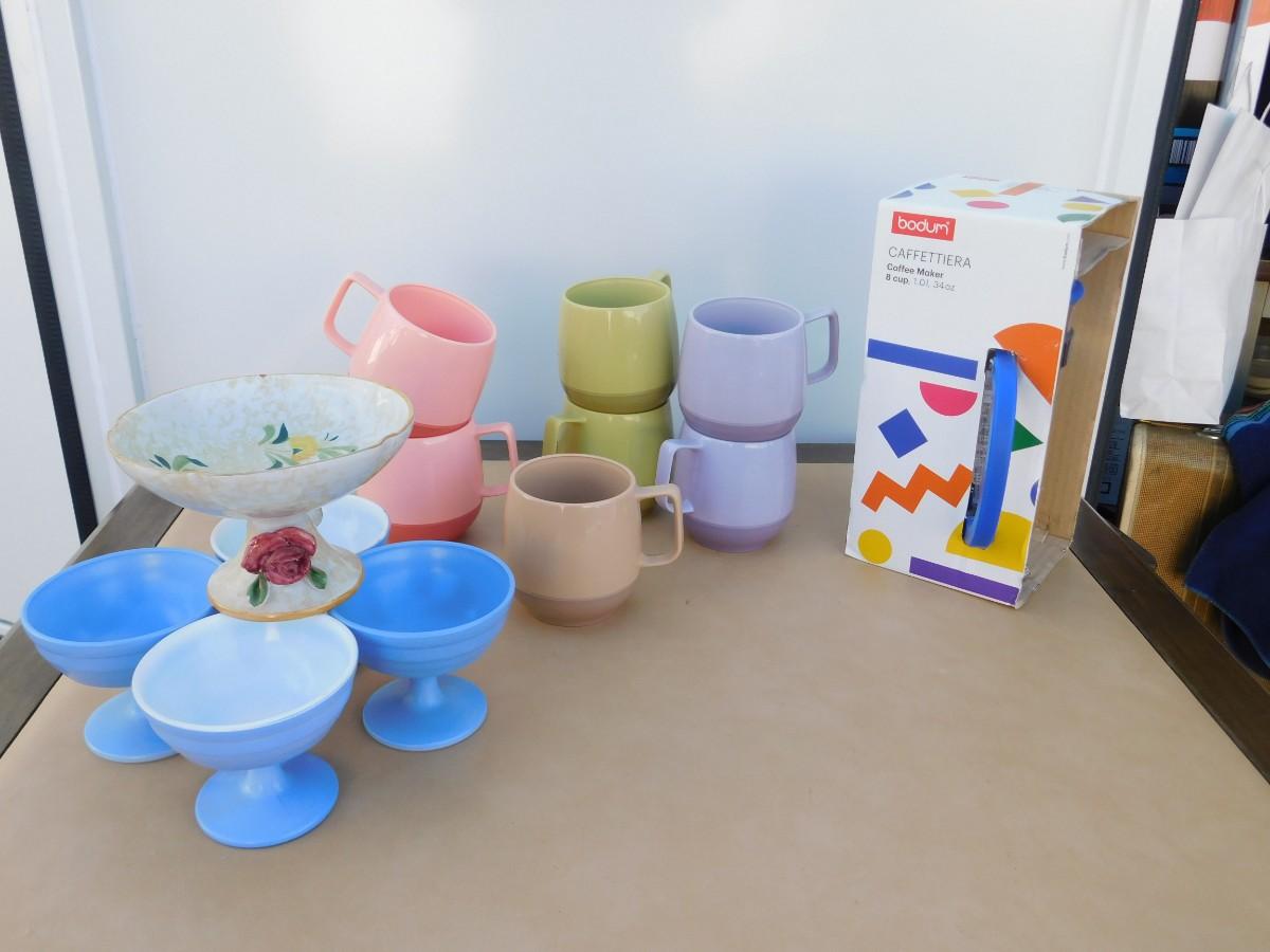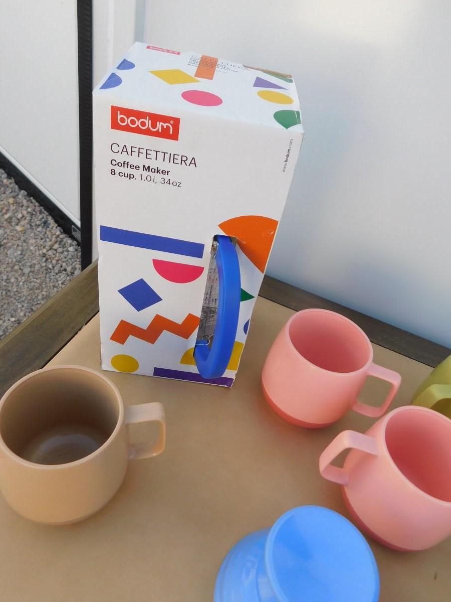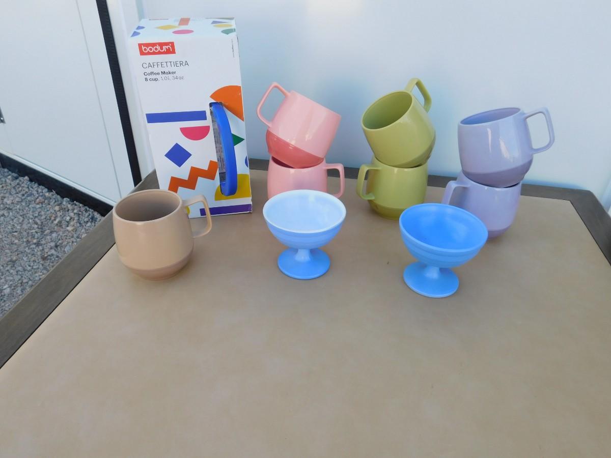 NIB COFFEE PRESS, VINTAGE COFFEE CUPS, ICE CREAM COMMODES, ITALIAN DISH