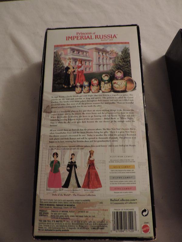(NEW) BARBIE COLLECTOR PINK LABLE WORLD DOLLS AND BOTH 25TH ANNIVERSARY. IMPERIAL RUSSIA AND PRINCESS OF THE RENAISSANCE BY MATTEL