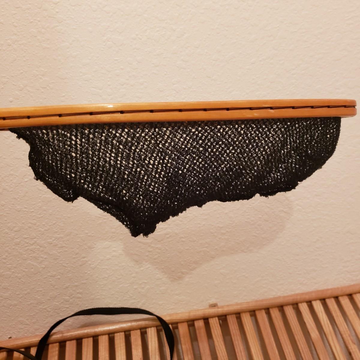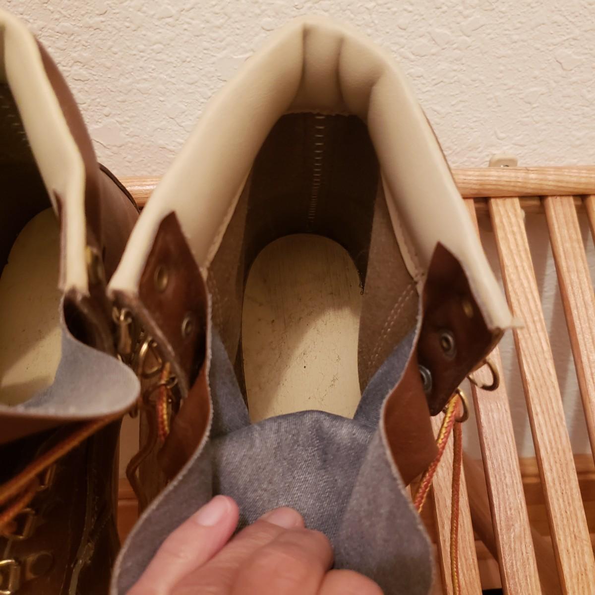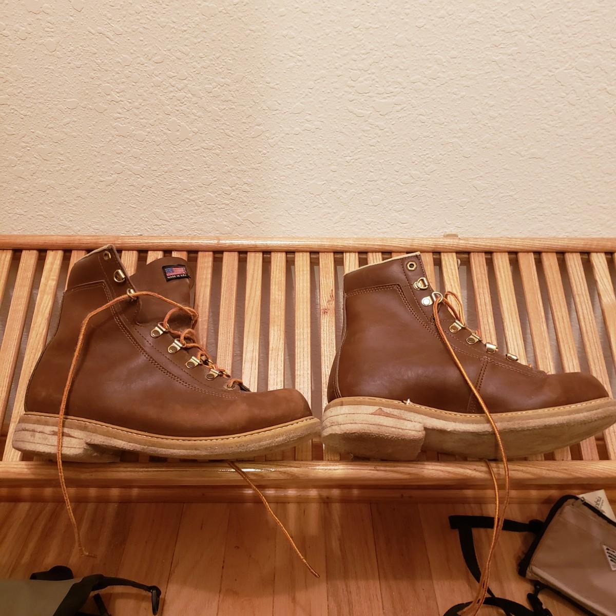 There are two wooden handled fly fishing landing nets by Cabela's and Orvis measuring 23". The new Columbia Flats Chest Pack says O/S. The pack is lined with sheeps wool like material. The boots appear to be Weinbrenner brand and measure approximately 12" in length and 4" wide. The soles are covered in a thick felt like material. The Watershed water proof bag is a heavy rubber like material.