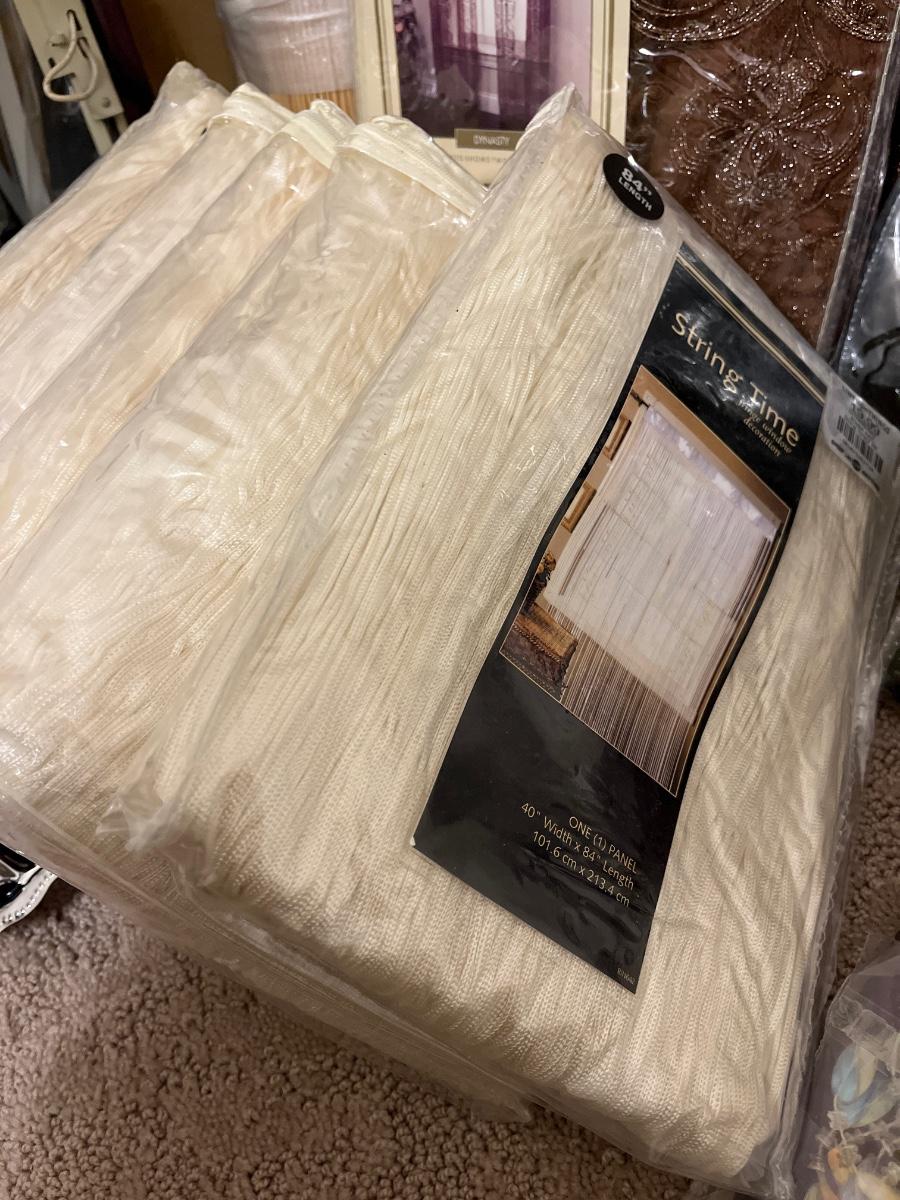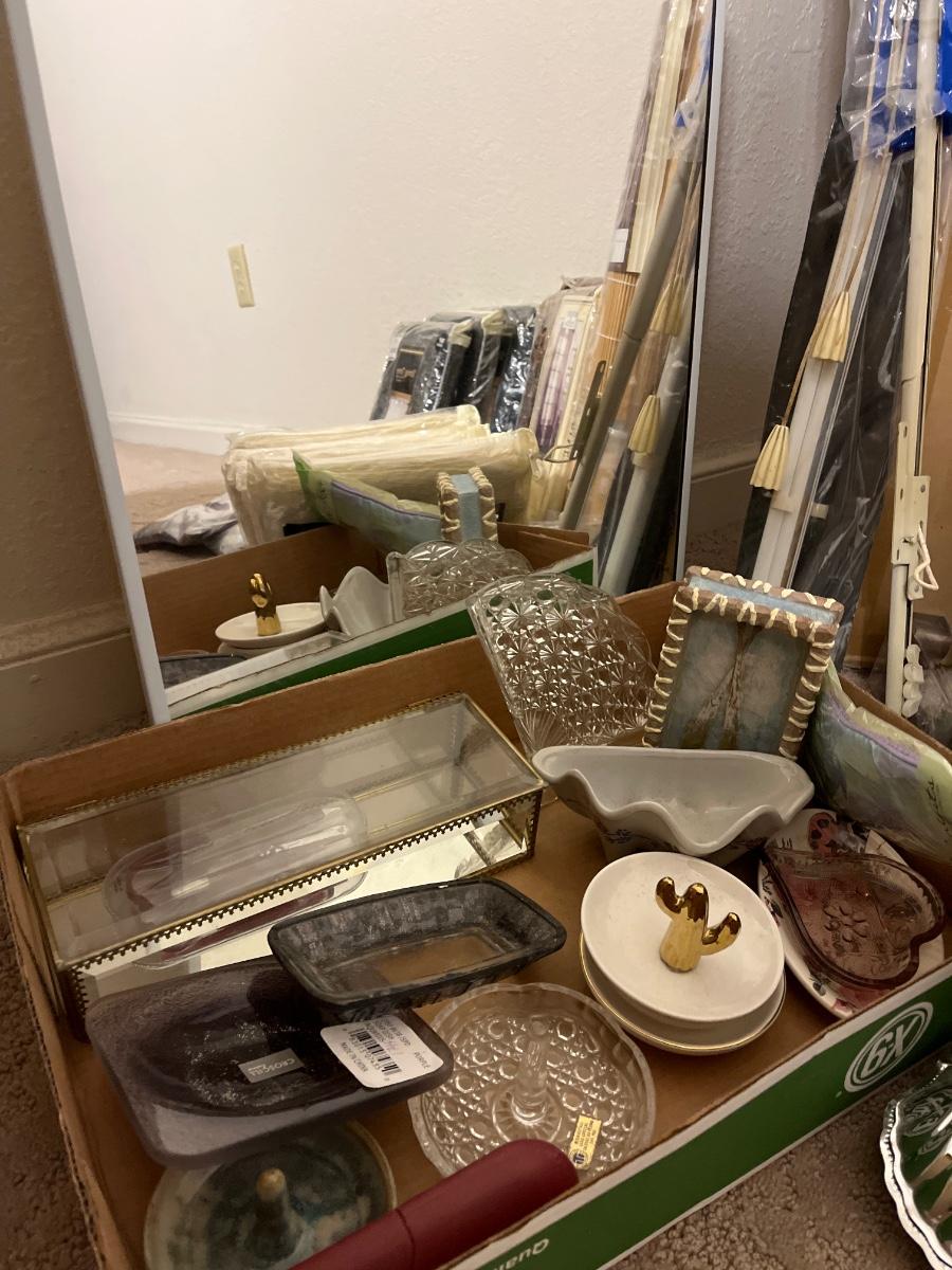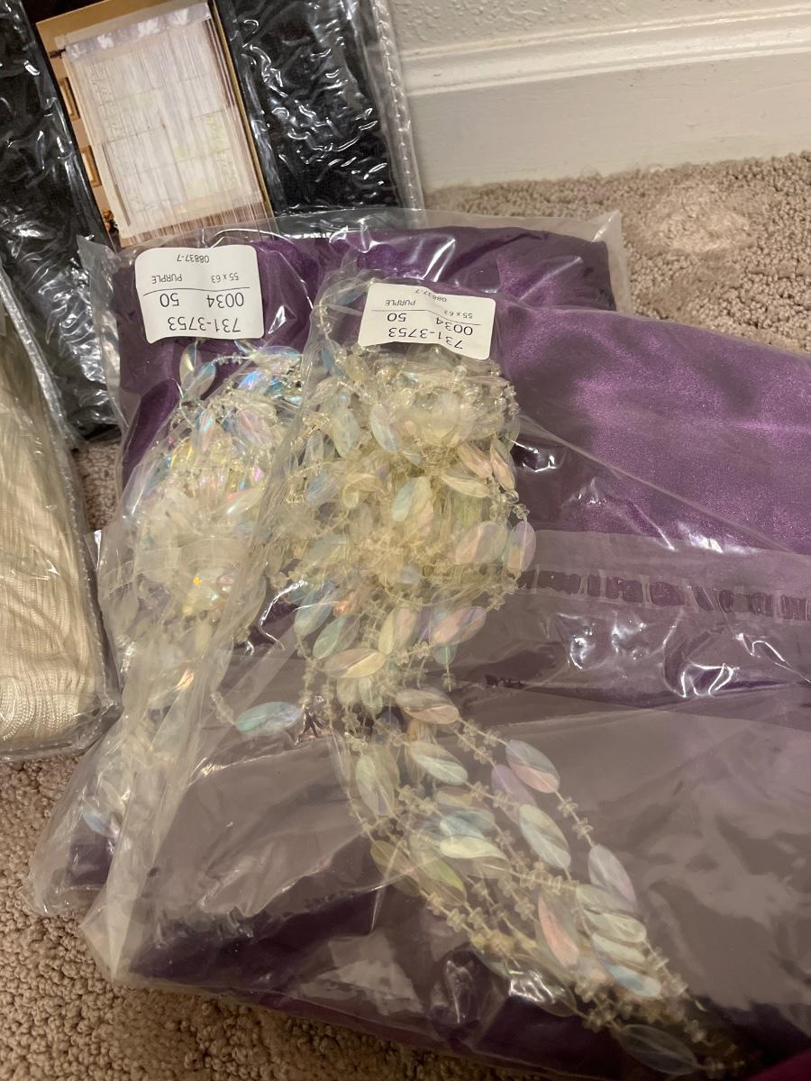 NIB curtains, rods medicine cabinet/mirror and misc glassware