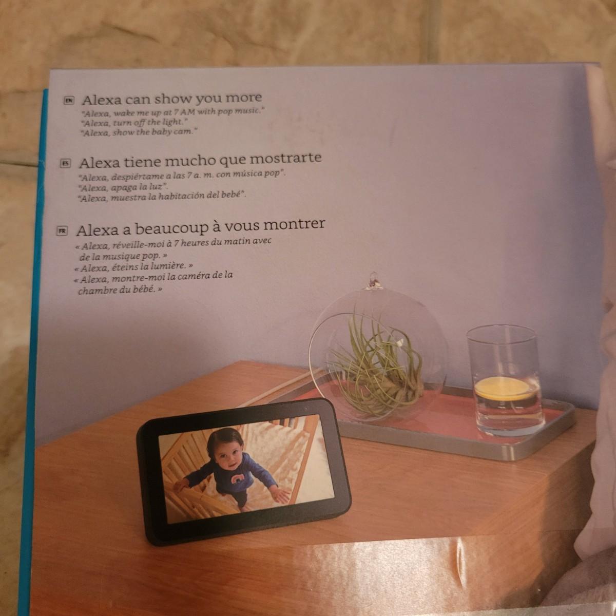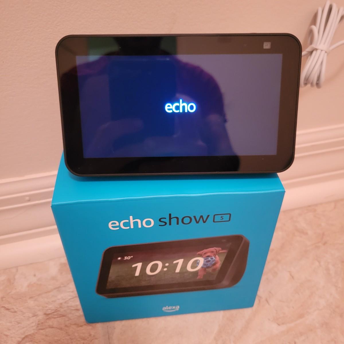A new in box Echo Show 5 powered by Alexa that powered on when plugged in. This smart clock can create connectivity to all of your Alexa devices. It measures approximately 6" x 3.5" x 6". Shipping available