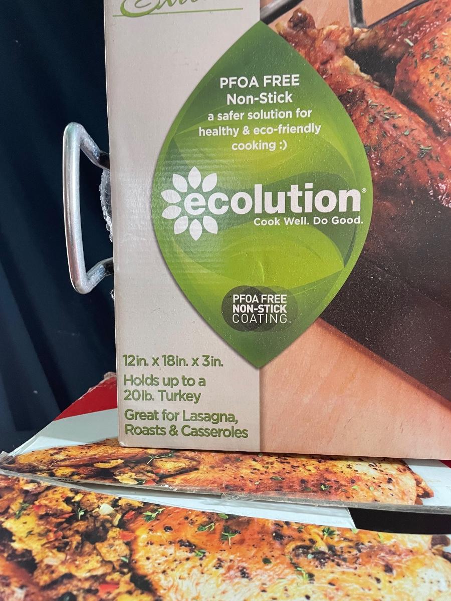 Both new in box, a General Electric roaster and Ecolution oven roaster pan.