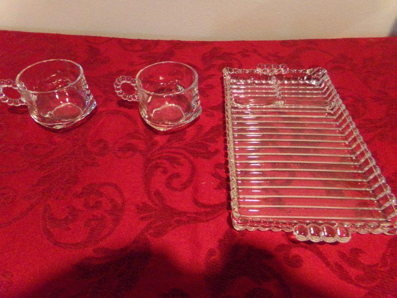 8 GLASS CUPS AND 15 GLASS PLATES.