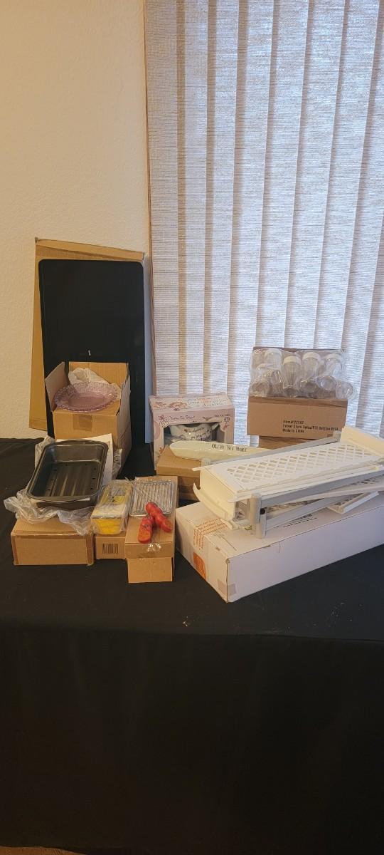 NIB meatloaf pans, swivel store spice/pill, small glass dishes and more
