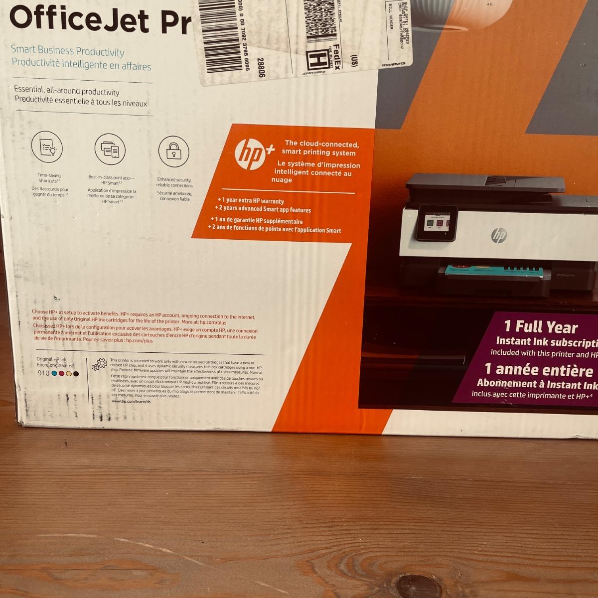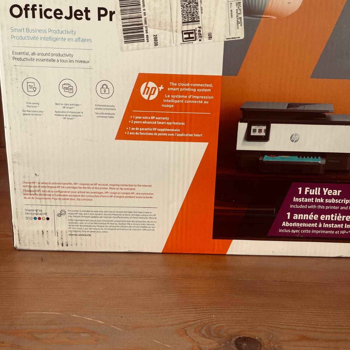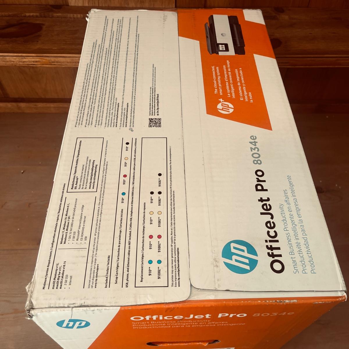 Lot includes NIB HP OfficeJet Pro with a box that measures 20” x 13” x 16”H. The last picture is of an identical model but is not the actual item.