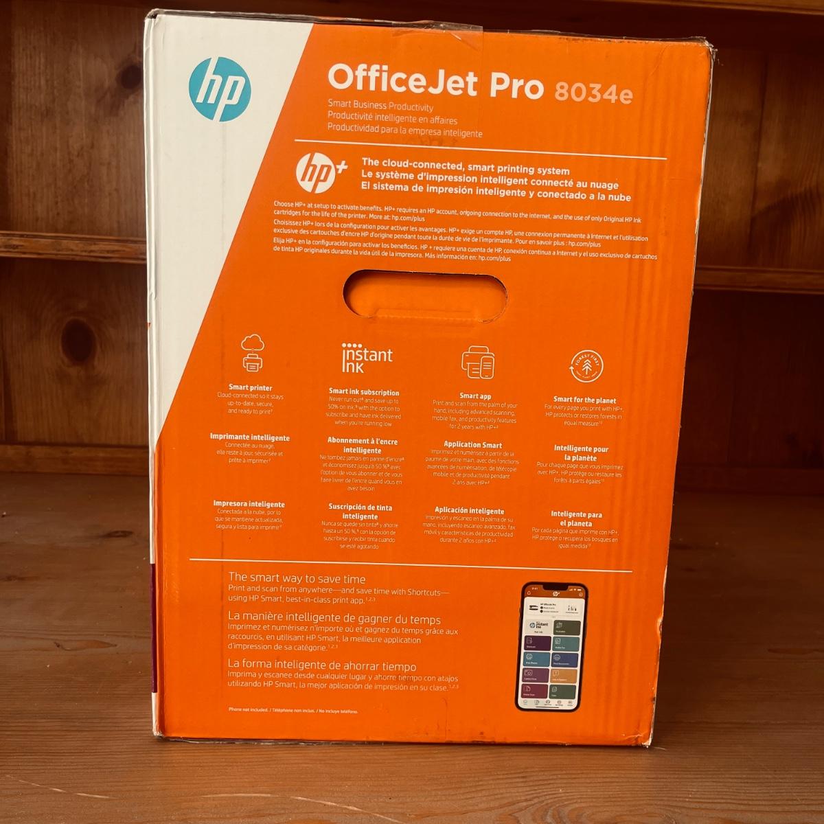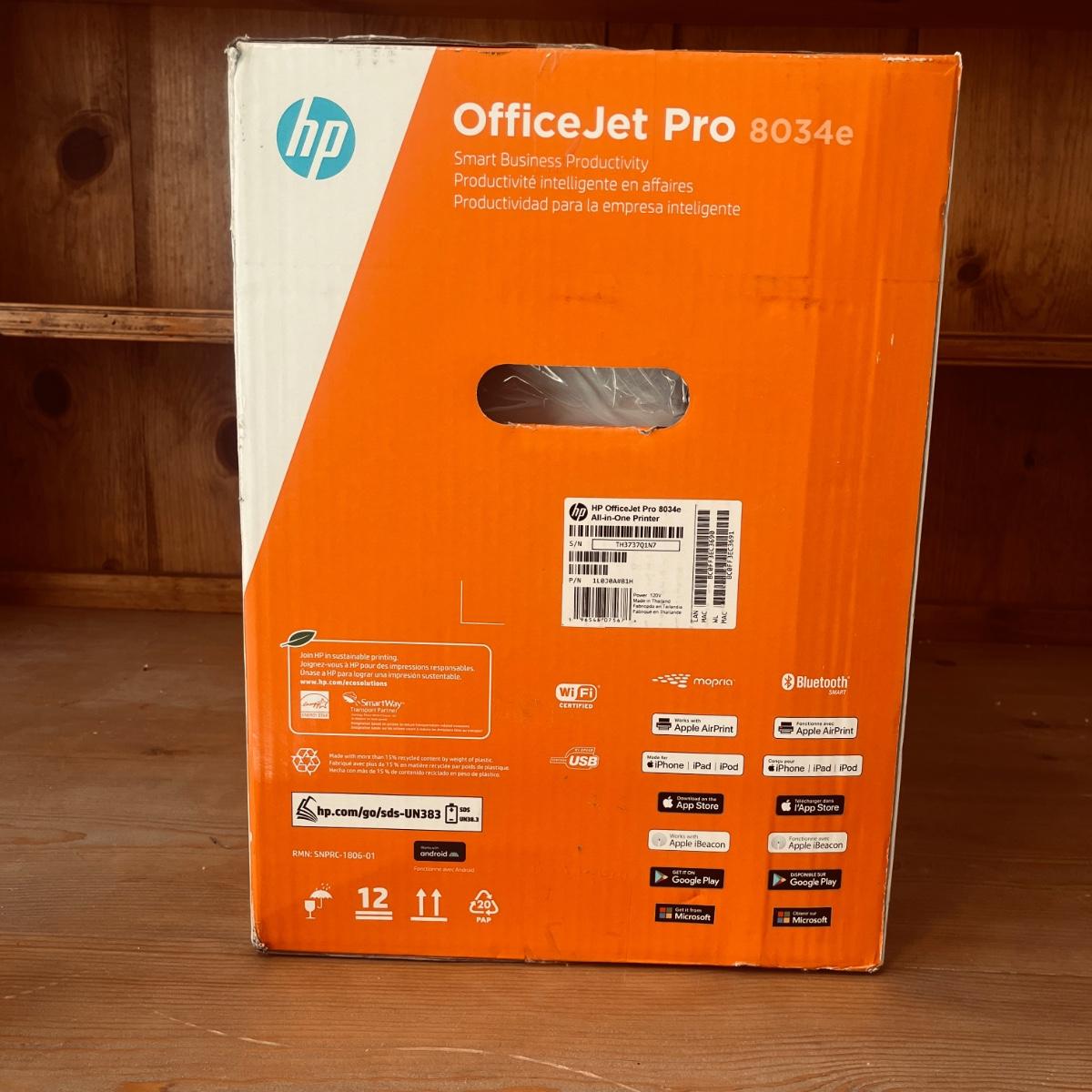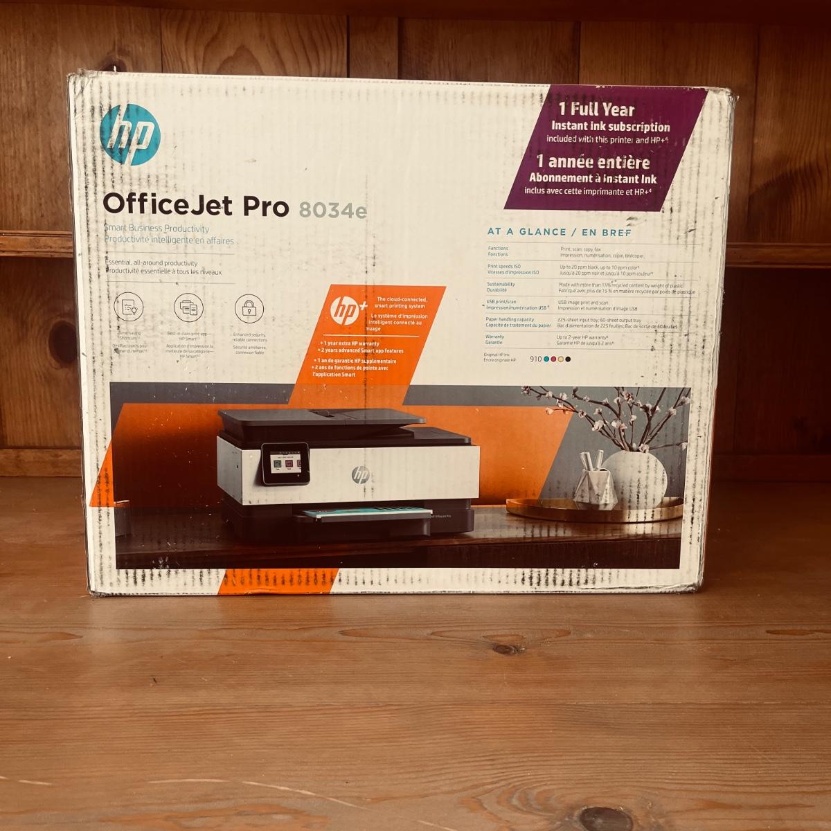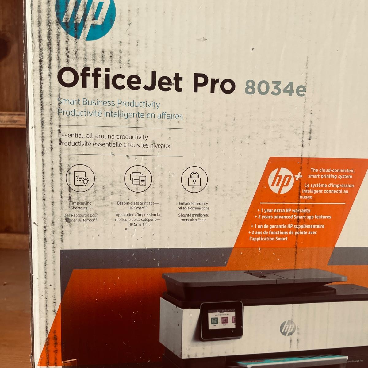 Lot includes NIB HP OfficeJet Pro with a box that measures 20” x 13” x 16”H. The last picture is of an identical model but is not the actual item.