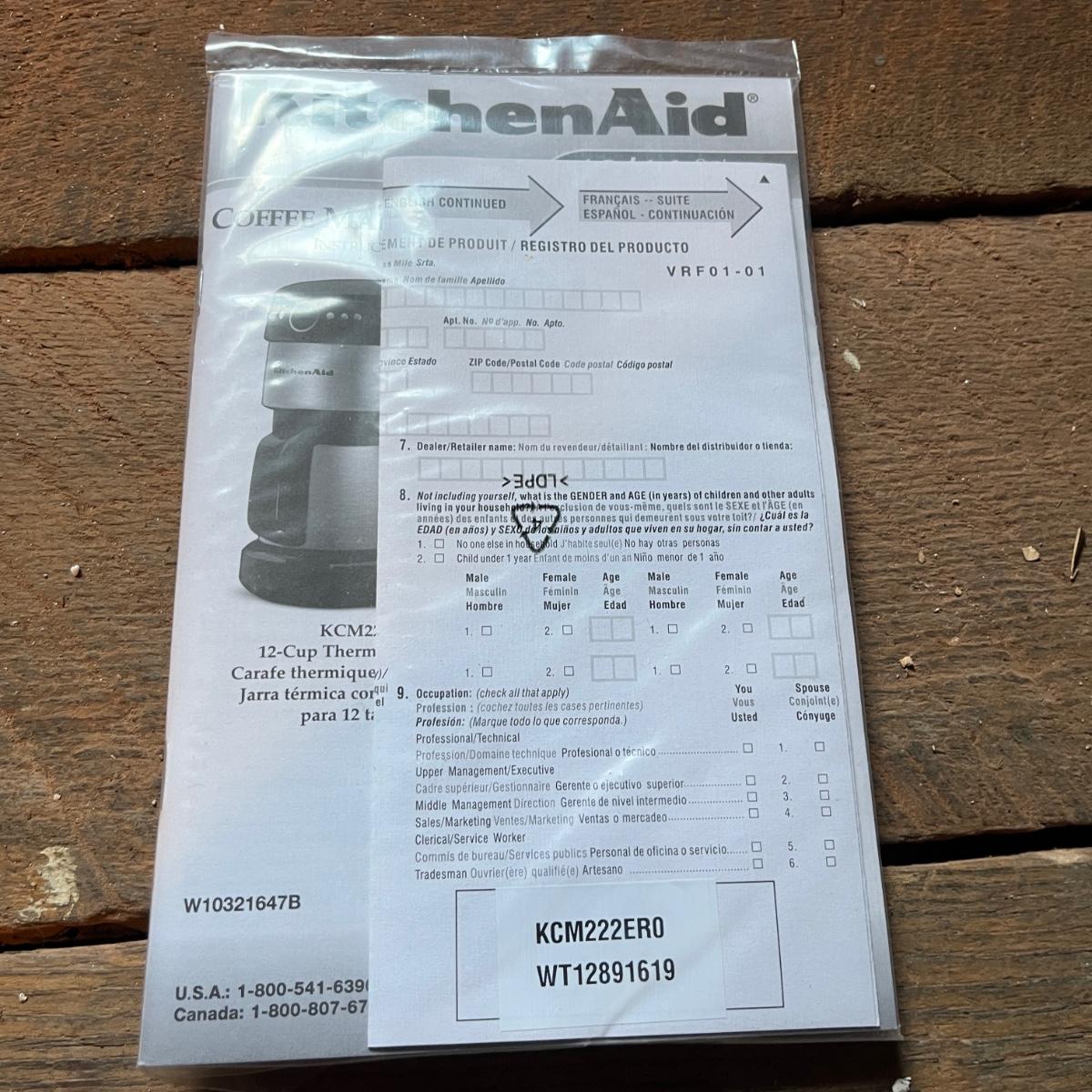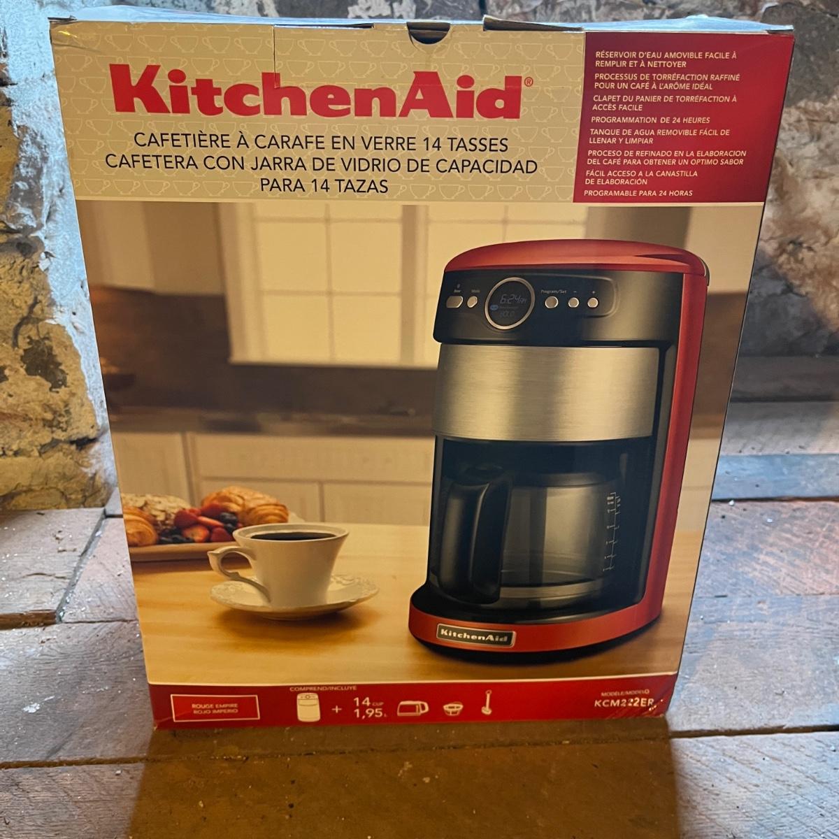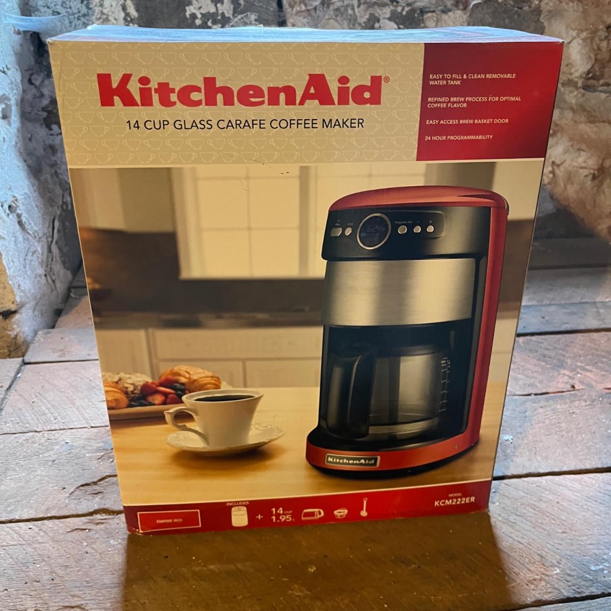 Lot includes a NIB Kitchen Aid 14 cup glass carafe coffee maker. Item was only taken out of box for pictures.