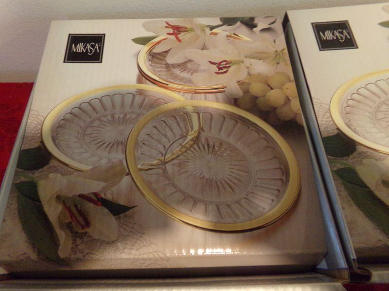 LOT 54  NIB MIKASA PLATES WITH GOLD TRIM