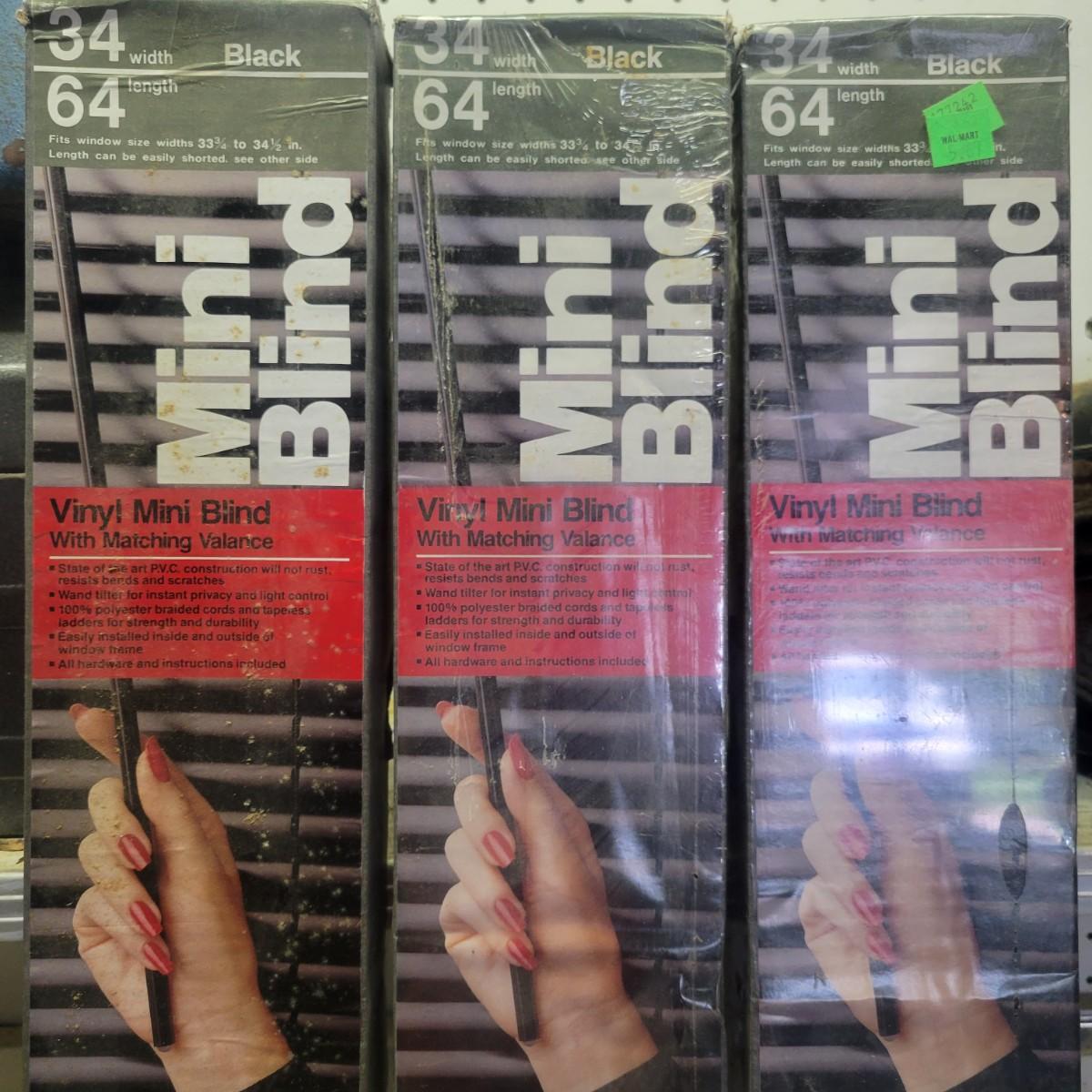 All items are new and in their original packaging. Lot includes three sets of black mini Blinds 34" x 64", one alabaster mini blind 23" x 64", a brass wall lamp, a Harbor Freight wall lamp, organizational clean up caddy and a 12" x 20" x 1" filter. Local pickup only