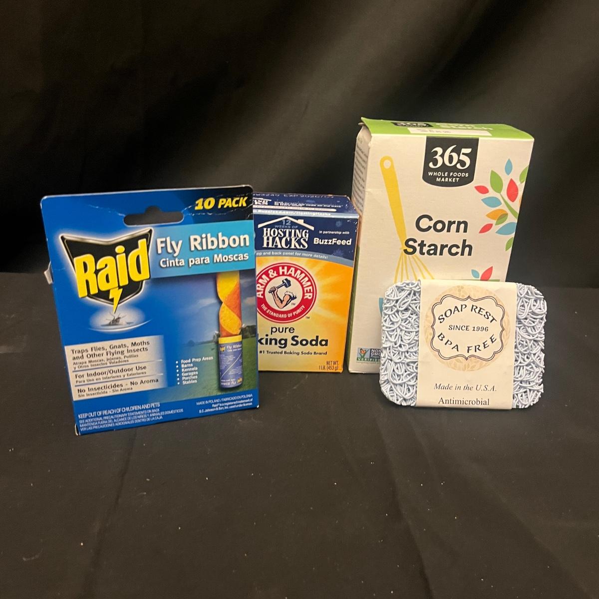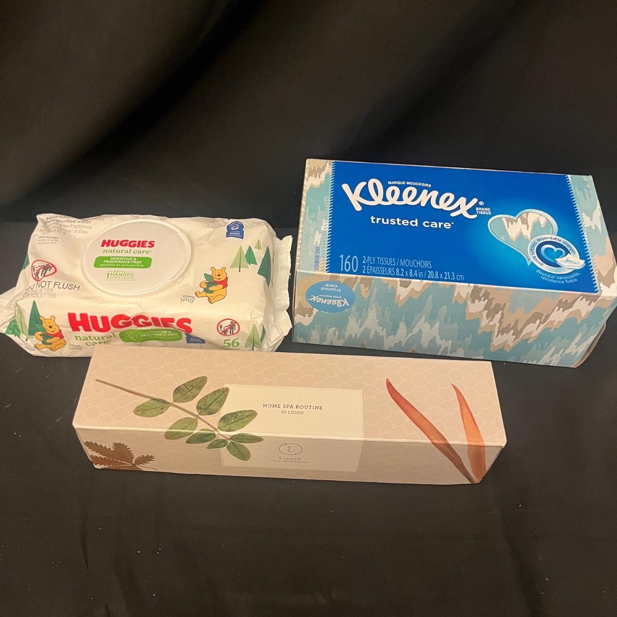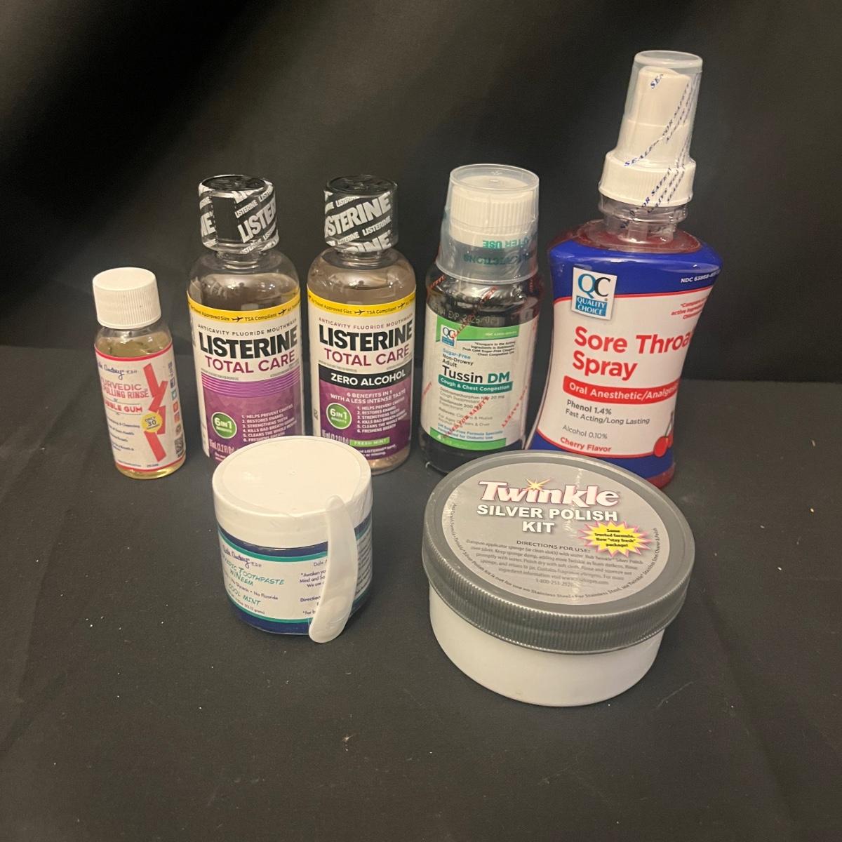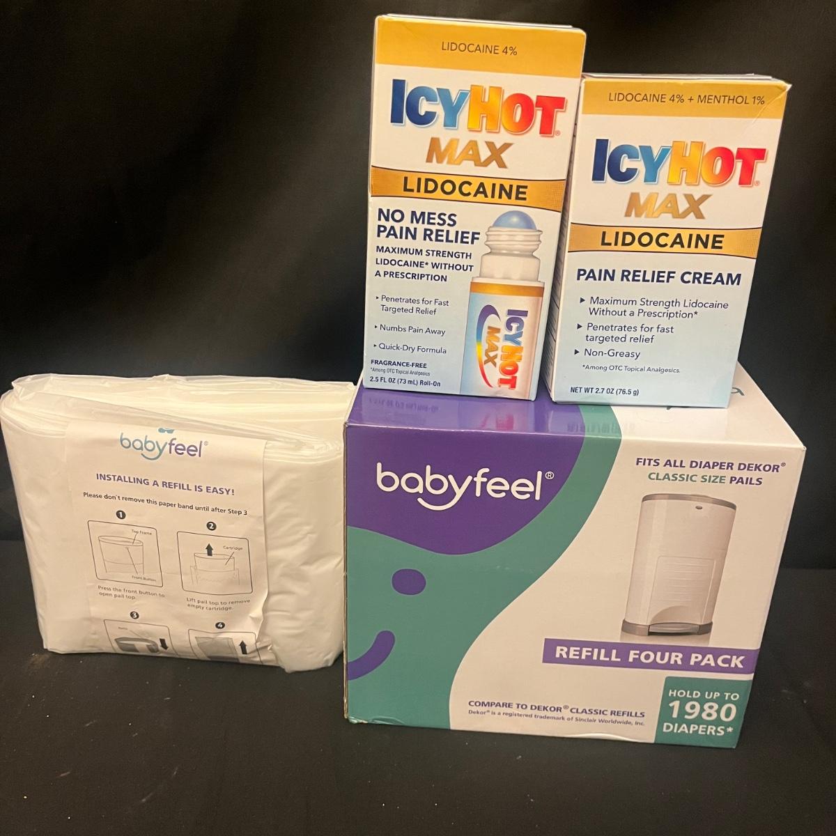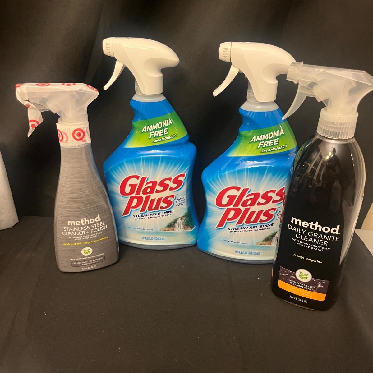 Lot contains a selection of NIB products that includes Blueland Dishwasher detergent tablets, Duraliner surface protector, Glass Plus, Icy Hot, granite cleaner, Kleenex and more.