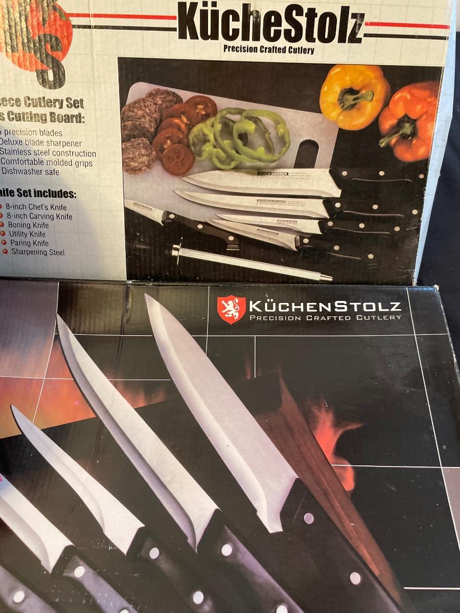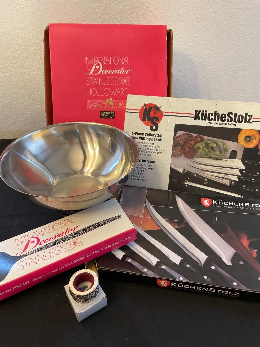 NIB stainless salad bowl, spoon and Kuchestolz knives