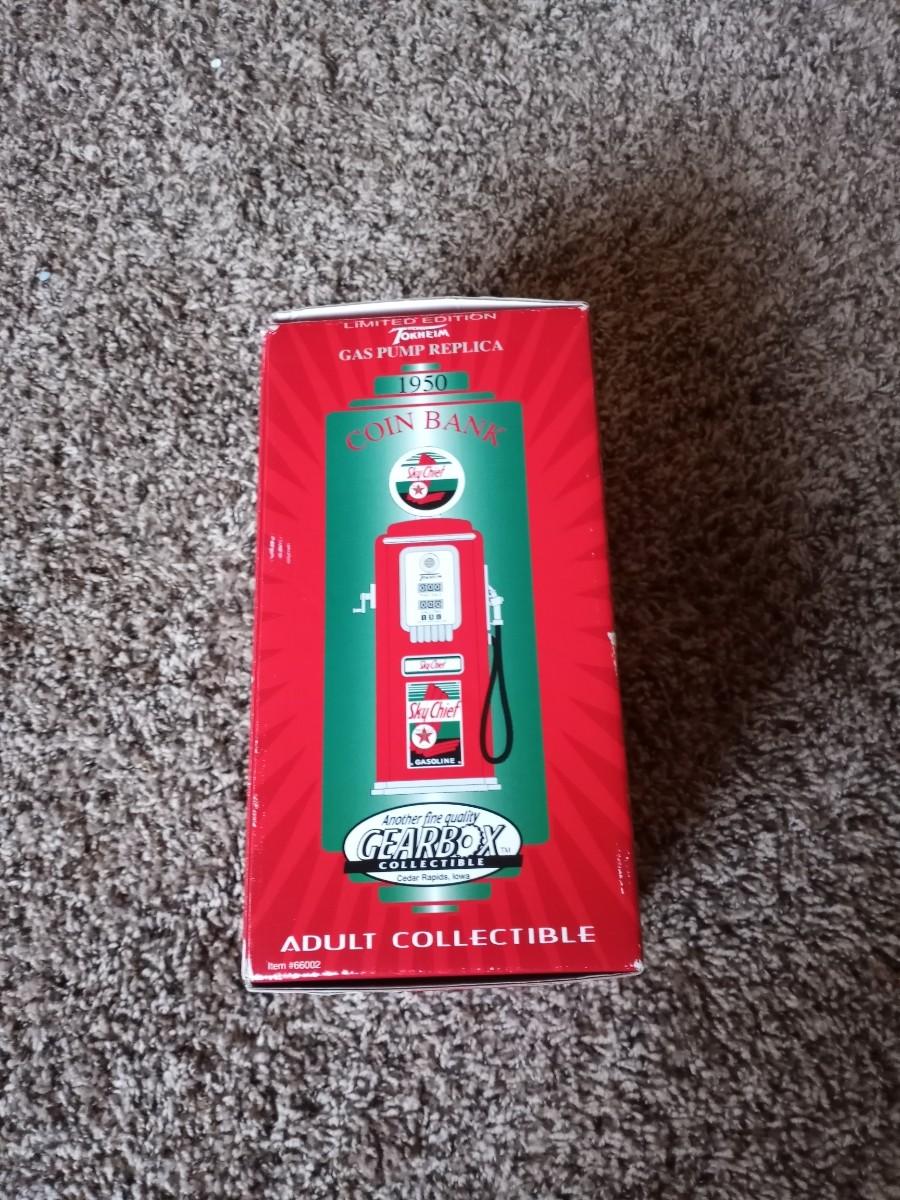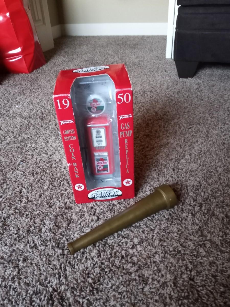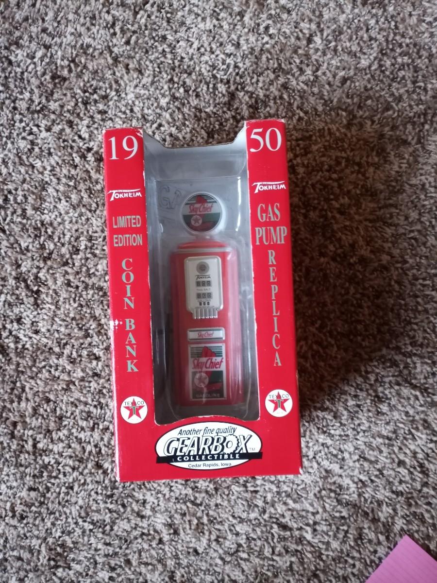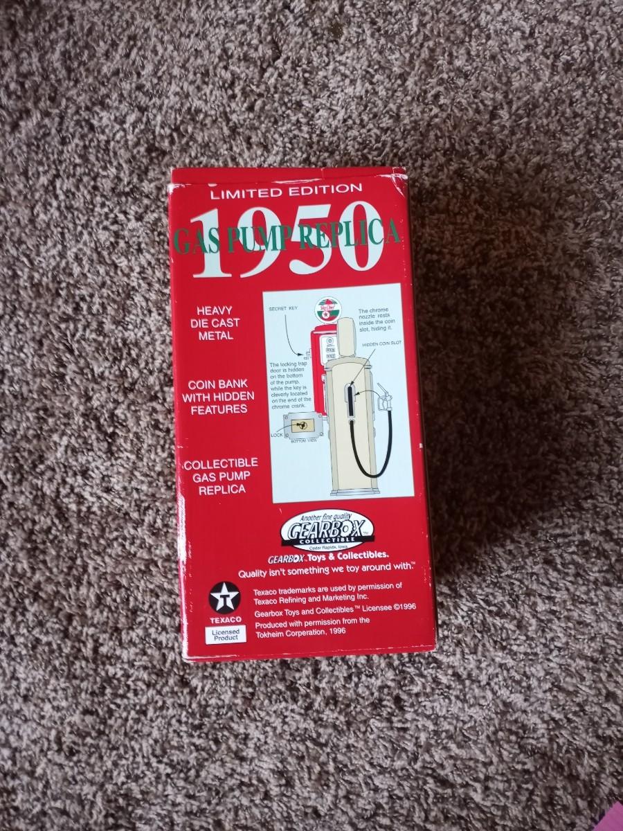 TEXACO 1950 GASPUMP COIN BANK AND BRASS FIREHOSE NOZZLE 8"
