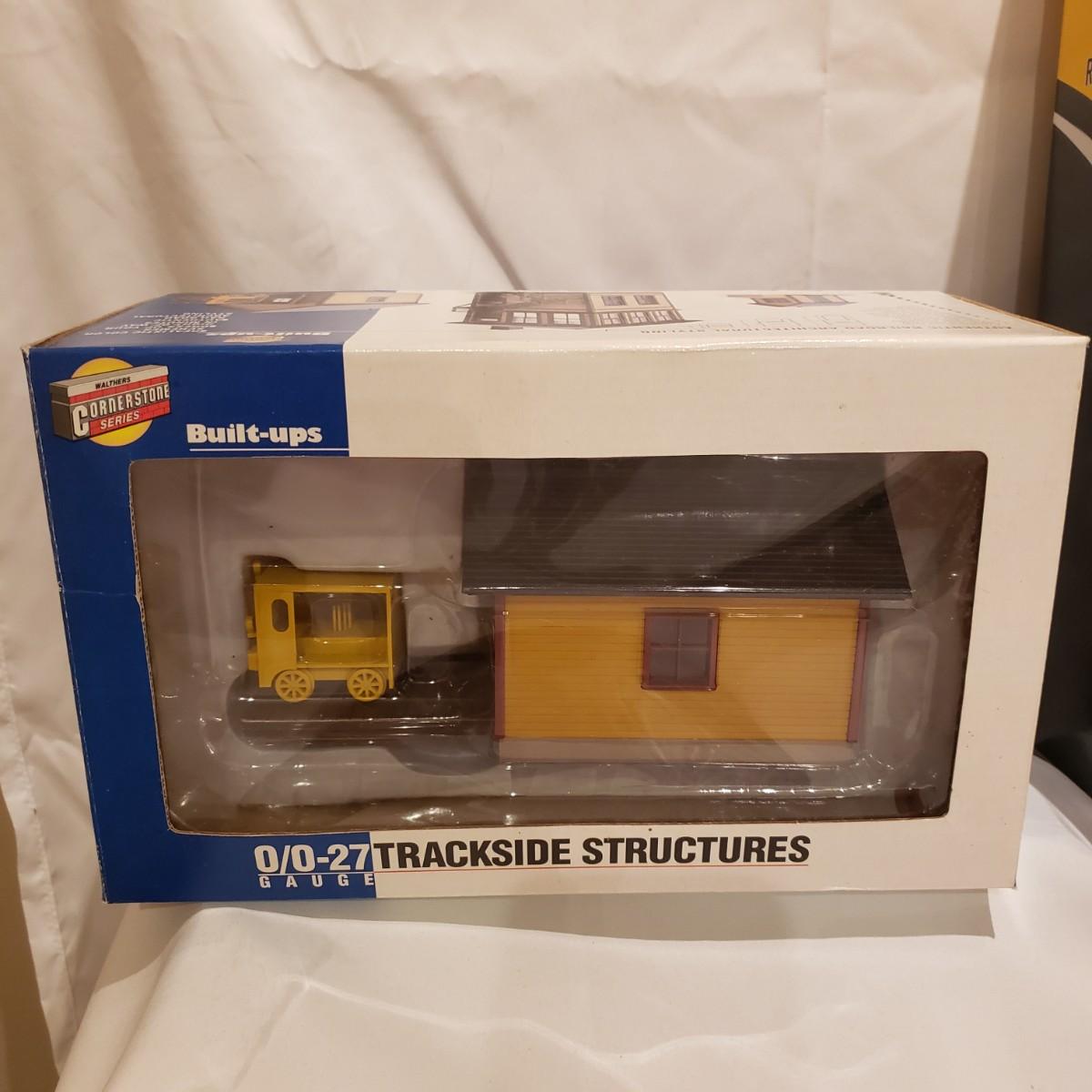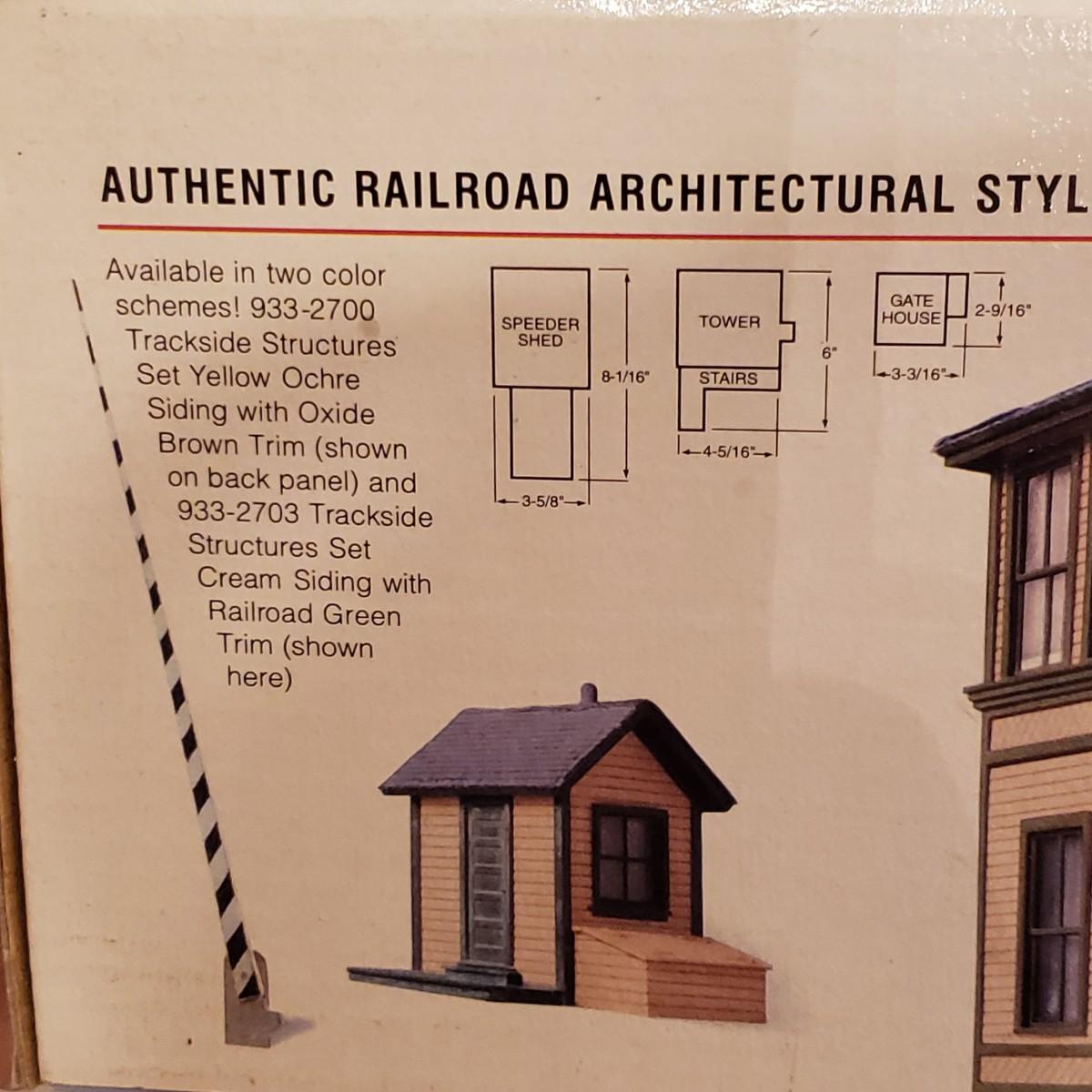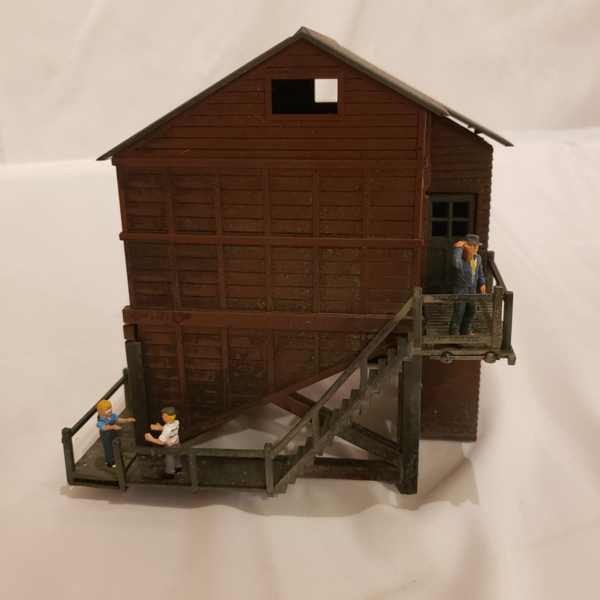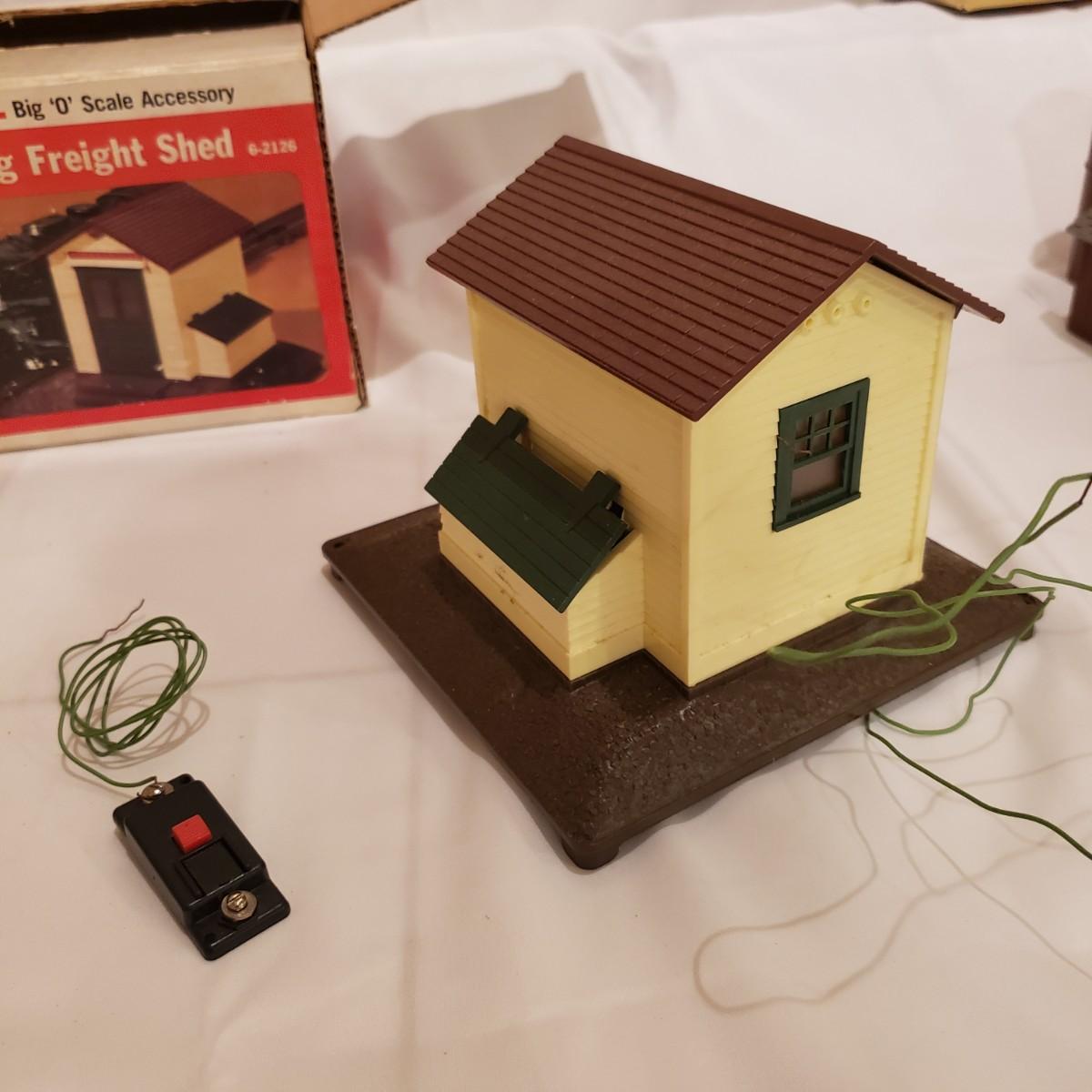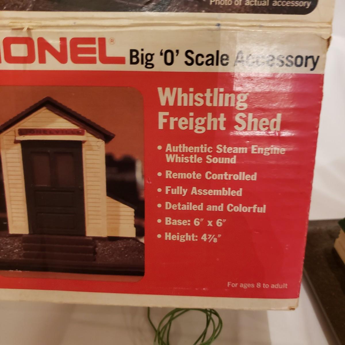 This train building lot features six NIB buildings and one that comes with the original box. The Whistling Freight Shed has been used, but has it's original box. The barn measures 9" x 6" x 6"H. The roof is removable. See pictures for details.