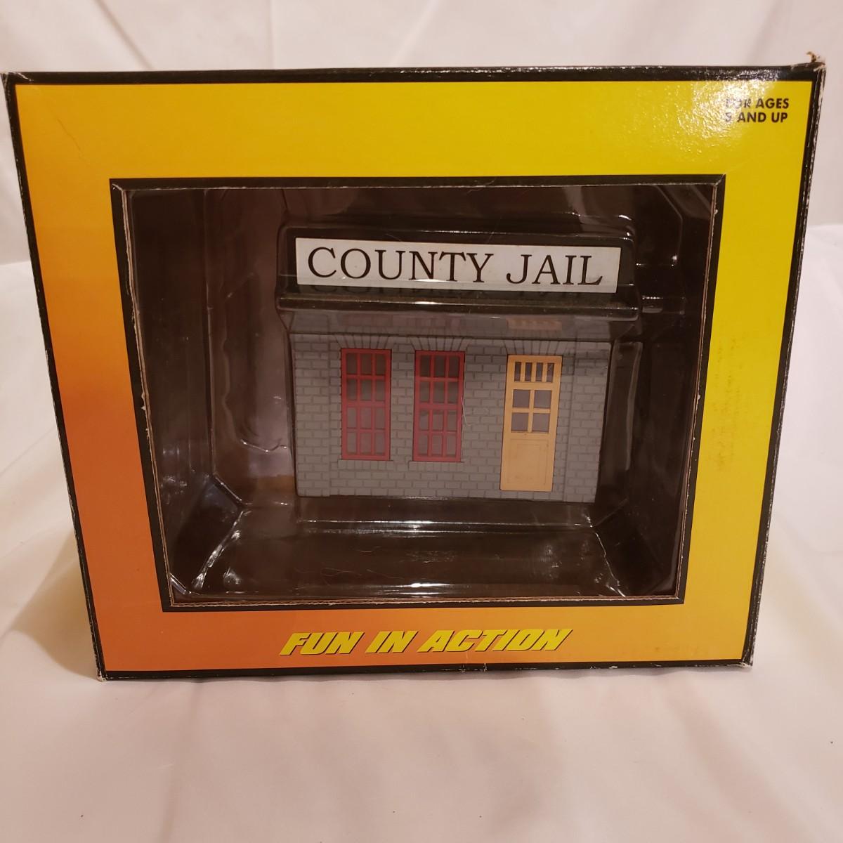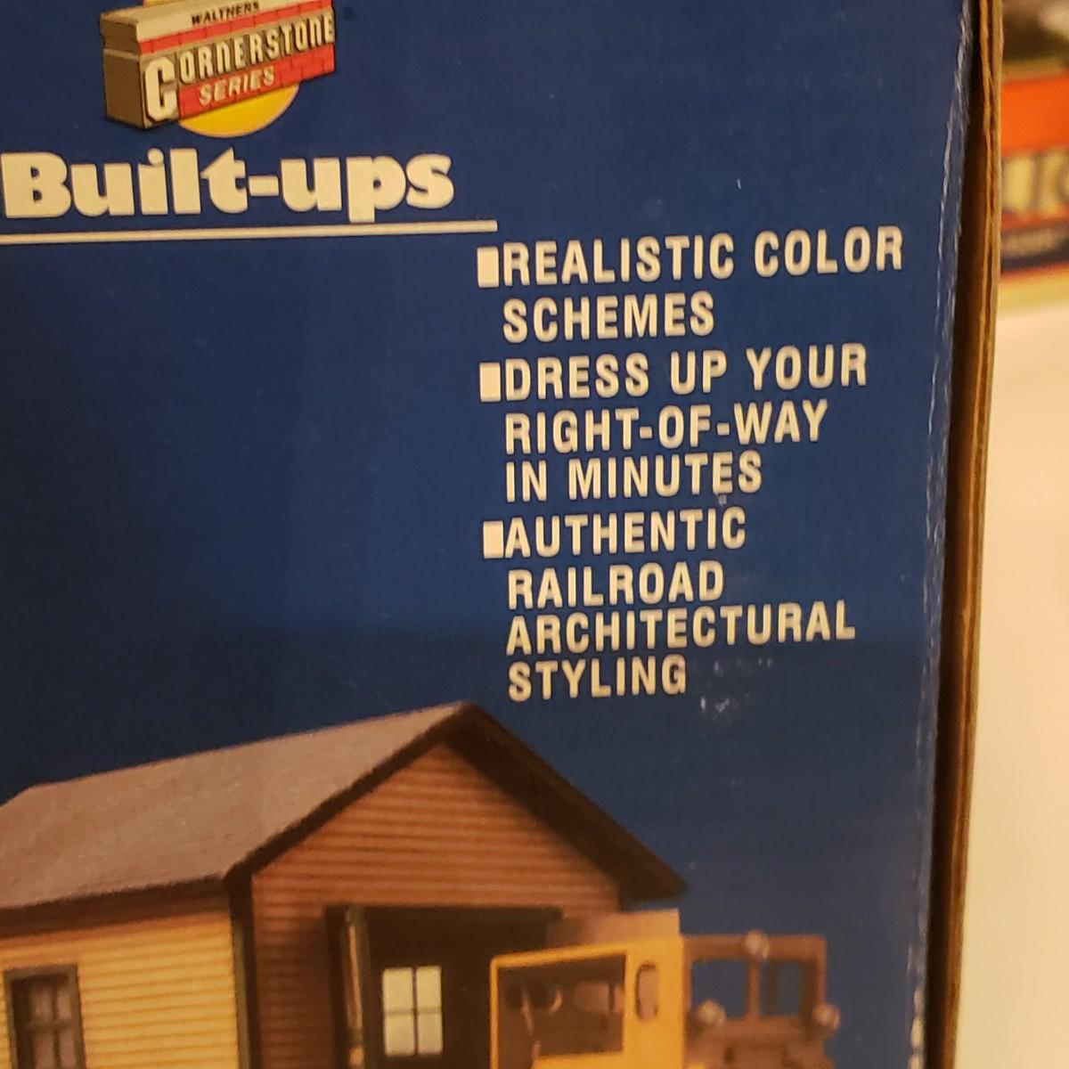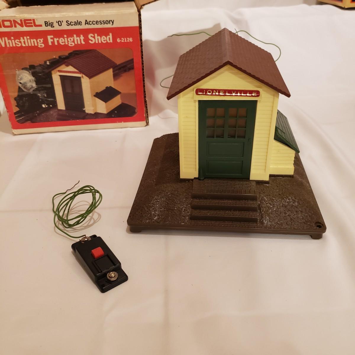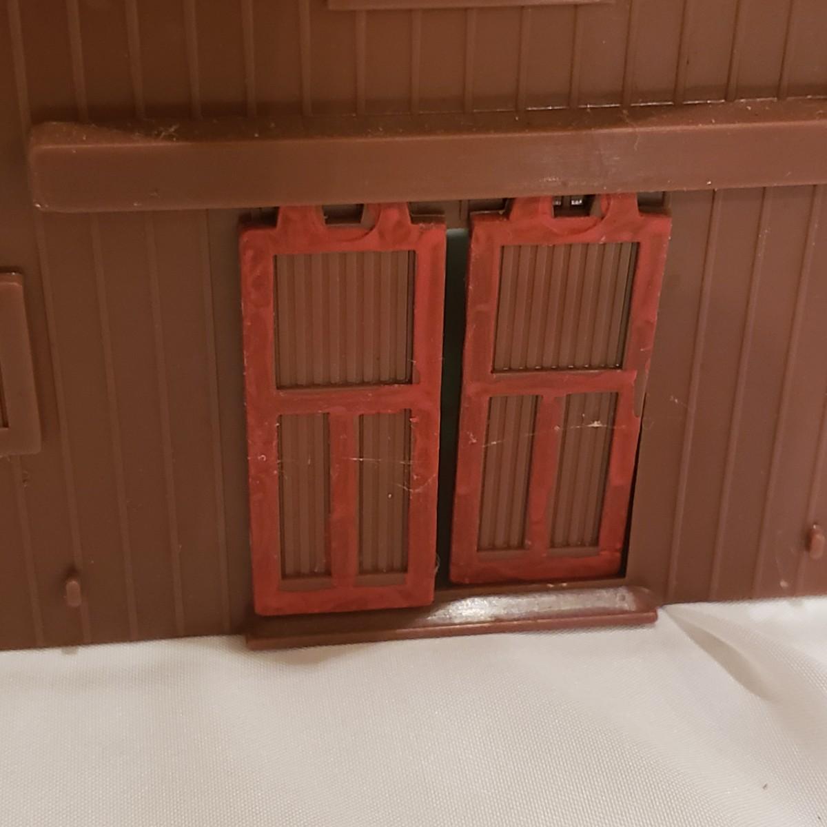This train building lot features six NIB buildings and one that comes with the original box. The Whistling Freight Shed has been used, but has it's original box. The barn measures 9" x 6" x 6"H. The roof is removable. See pictures for details.
