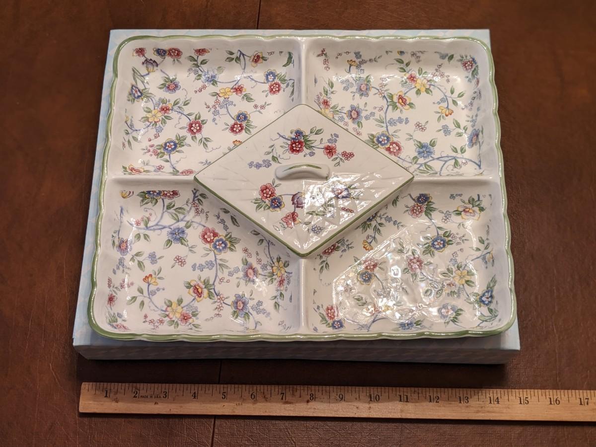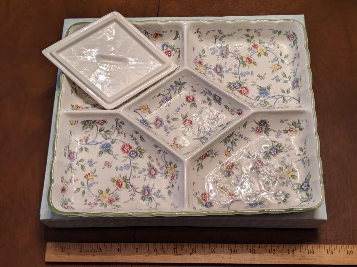 NIB Vintage Andrea by Sadek Corona Pattern Japan Large Relish Veggie Tray Floral