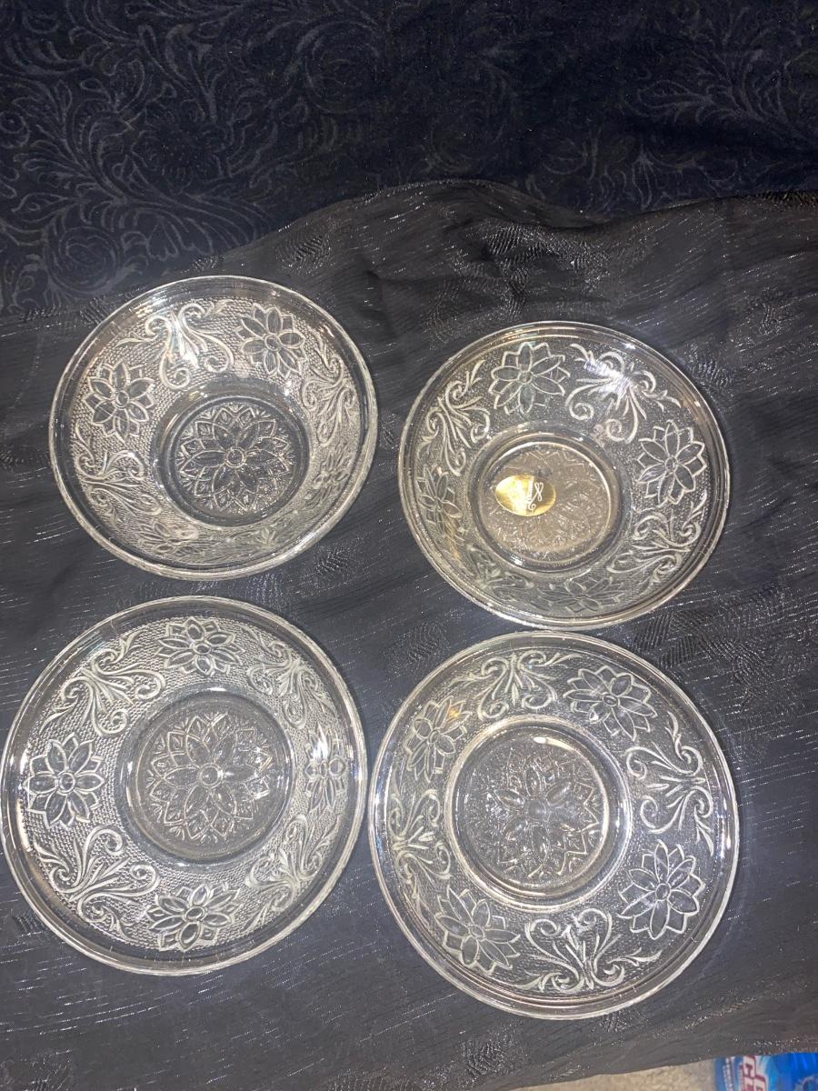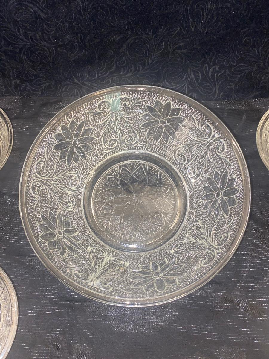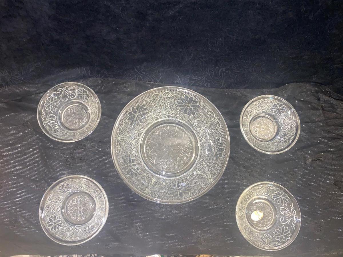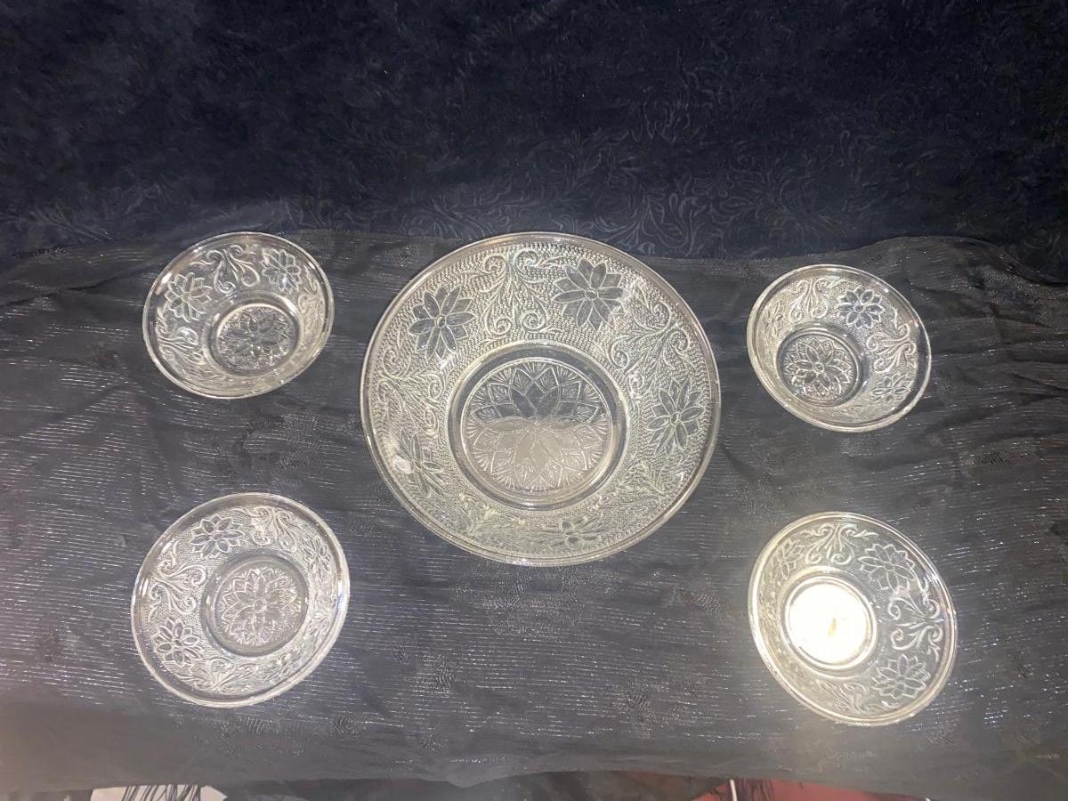 NIB INDIANA CLEAR EMBOSSED TIARA GLASS SALAD BOWL WITH 4 SERVING BOWLS