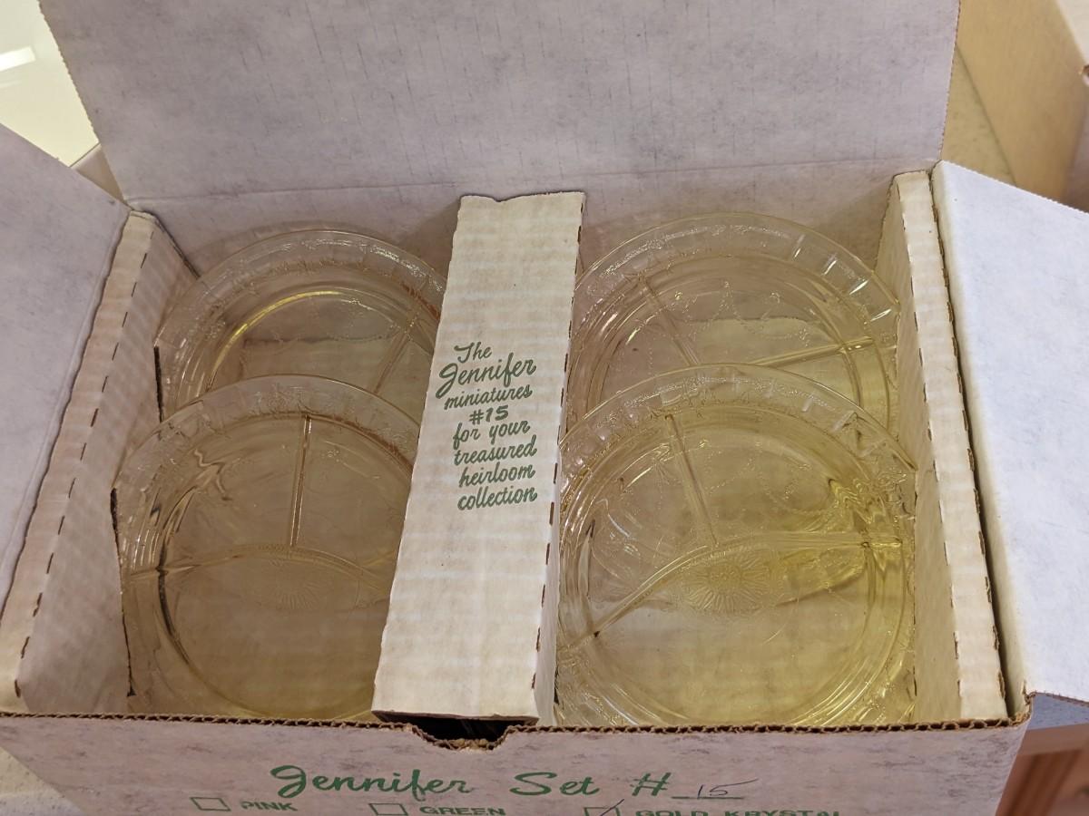NIB Vintage SET #15 Mosser Gold Glass Miniature Jennifer
