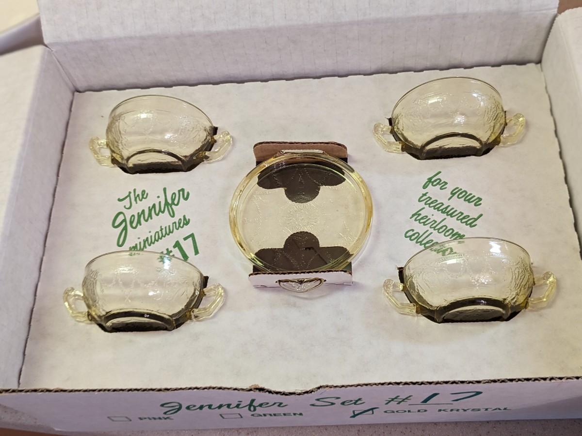 NIB Vintage SET #17 Mosser Gold Glass Miniature Jennifer