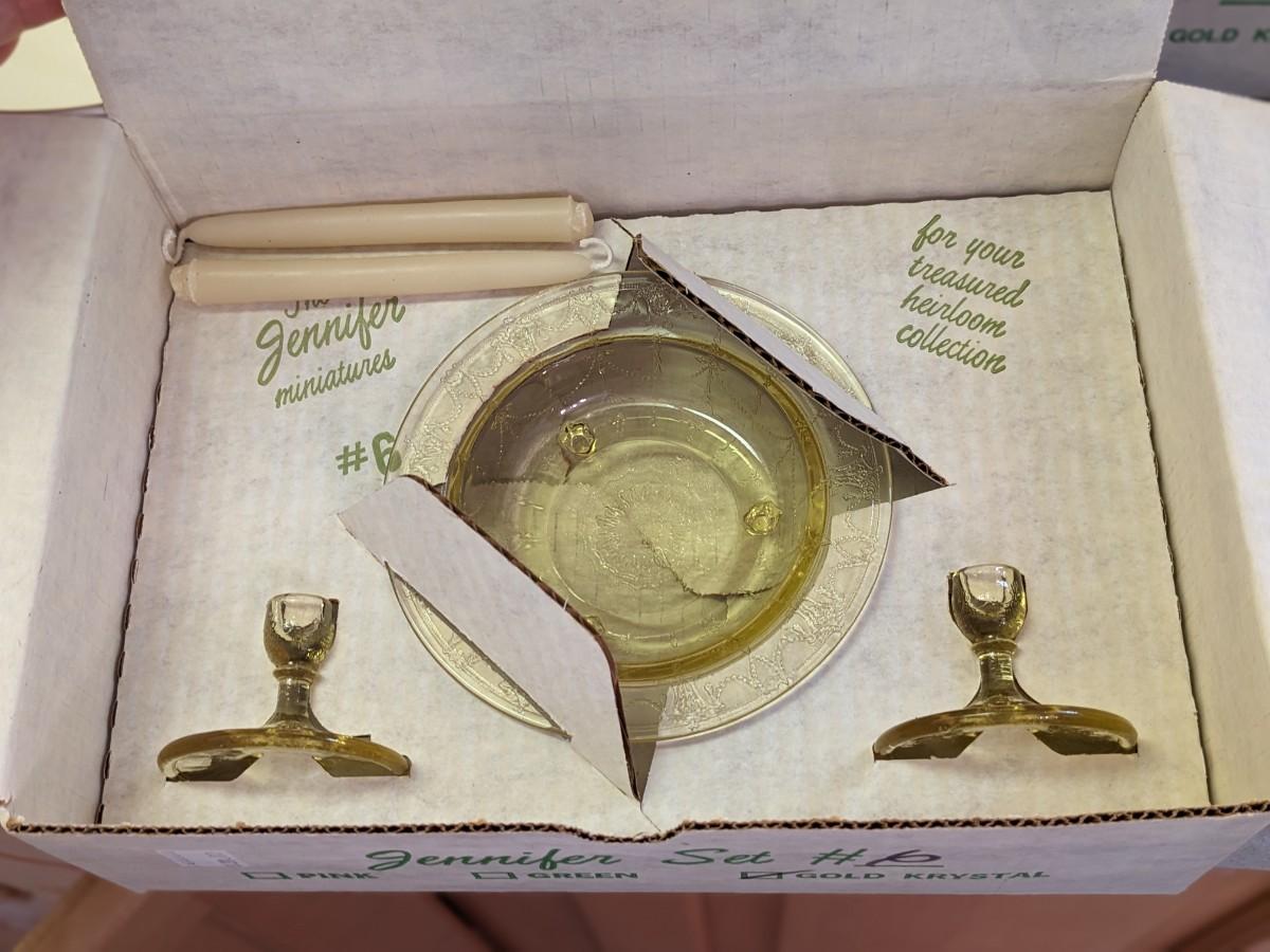 NIB Vintage SET #6 Mosser Gold Glass Miniature Jennifer