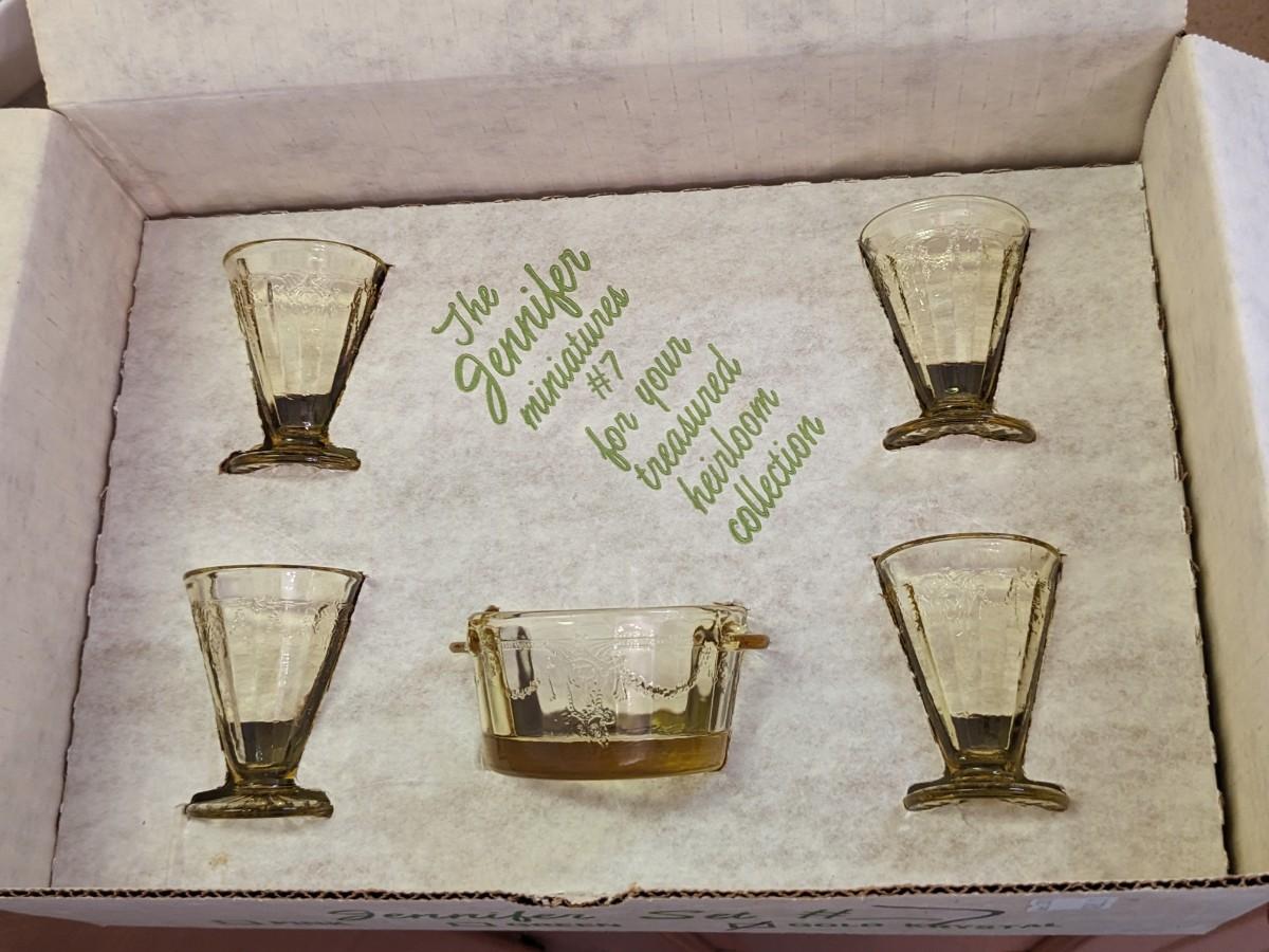 NIB Vintage SET #7 Mosser Gold Glass Miniature Jennifer