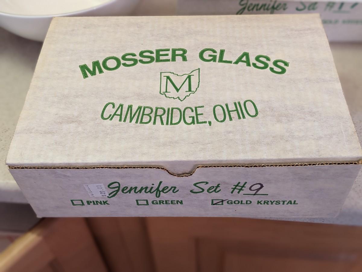 NIB Vintage SET #13 Mosser Yellow Glass Miniature Jennifer