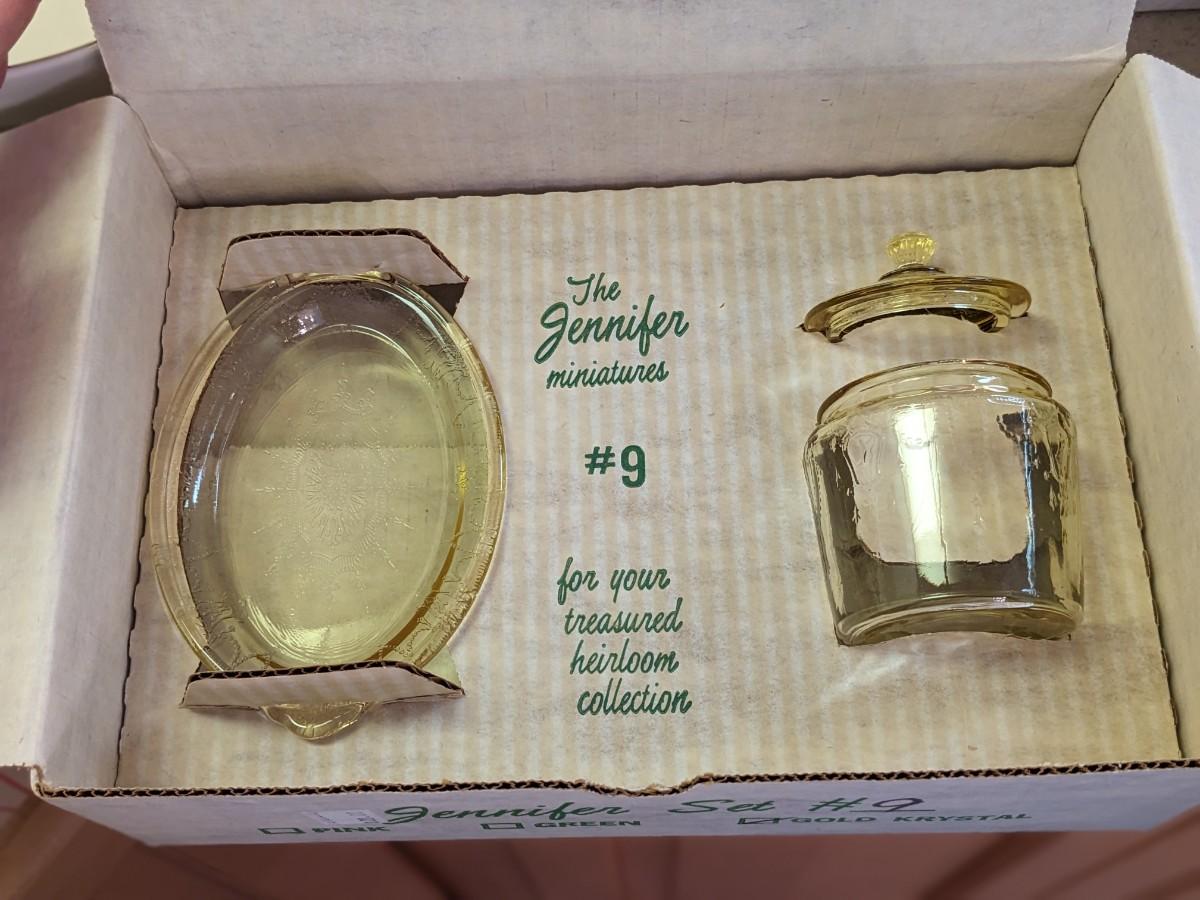 NIB Vintage SET #9 Mosser Yellow Glass Miniature Jennifer