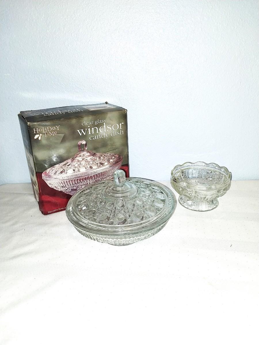 NIB WINDSOR CANDY DISH AND GLASS DISH
