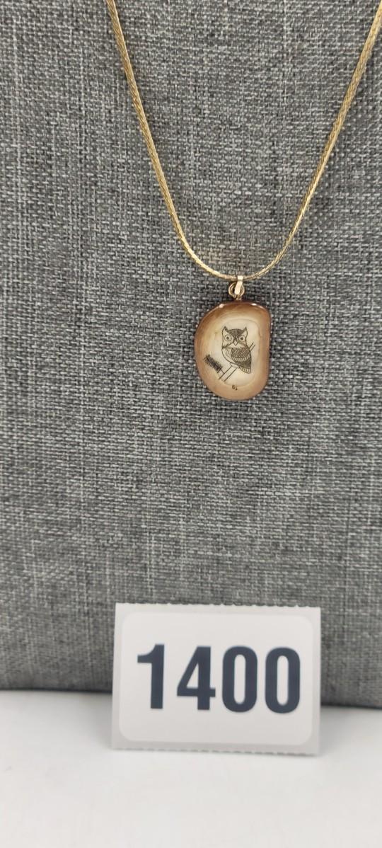 Nice Agate Owl On Gold Tone Chain