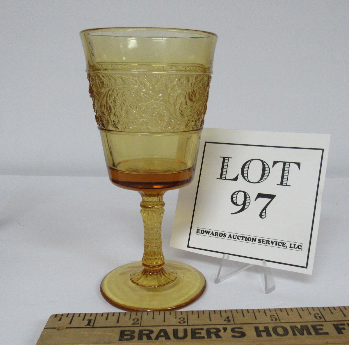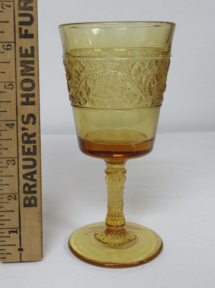 Nice Amber Pressed Glass Goblet, Roses and Leaves Theme