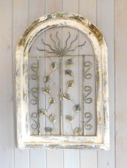 Nice Architectural Art Wall Hanging Arch Wood Frame with Metal Centerpiece 27"x40"