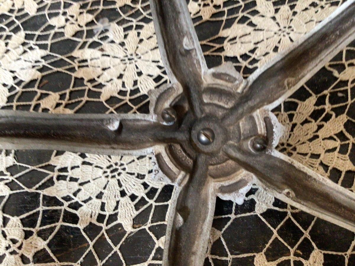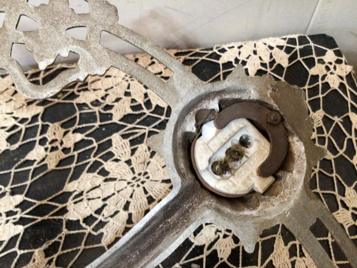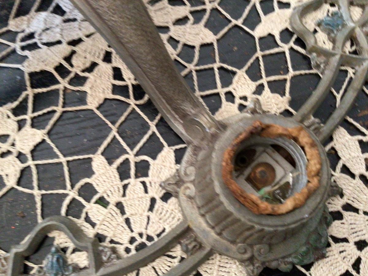Great looking Art Deco with settle color. Needs retiring but has a little damage but really great look.
